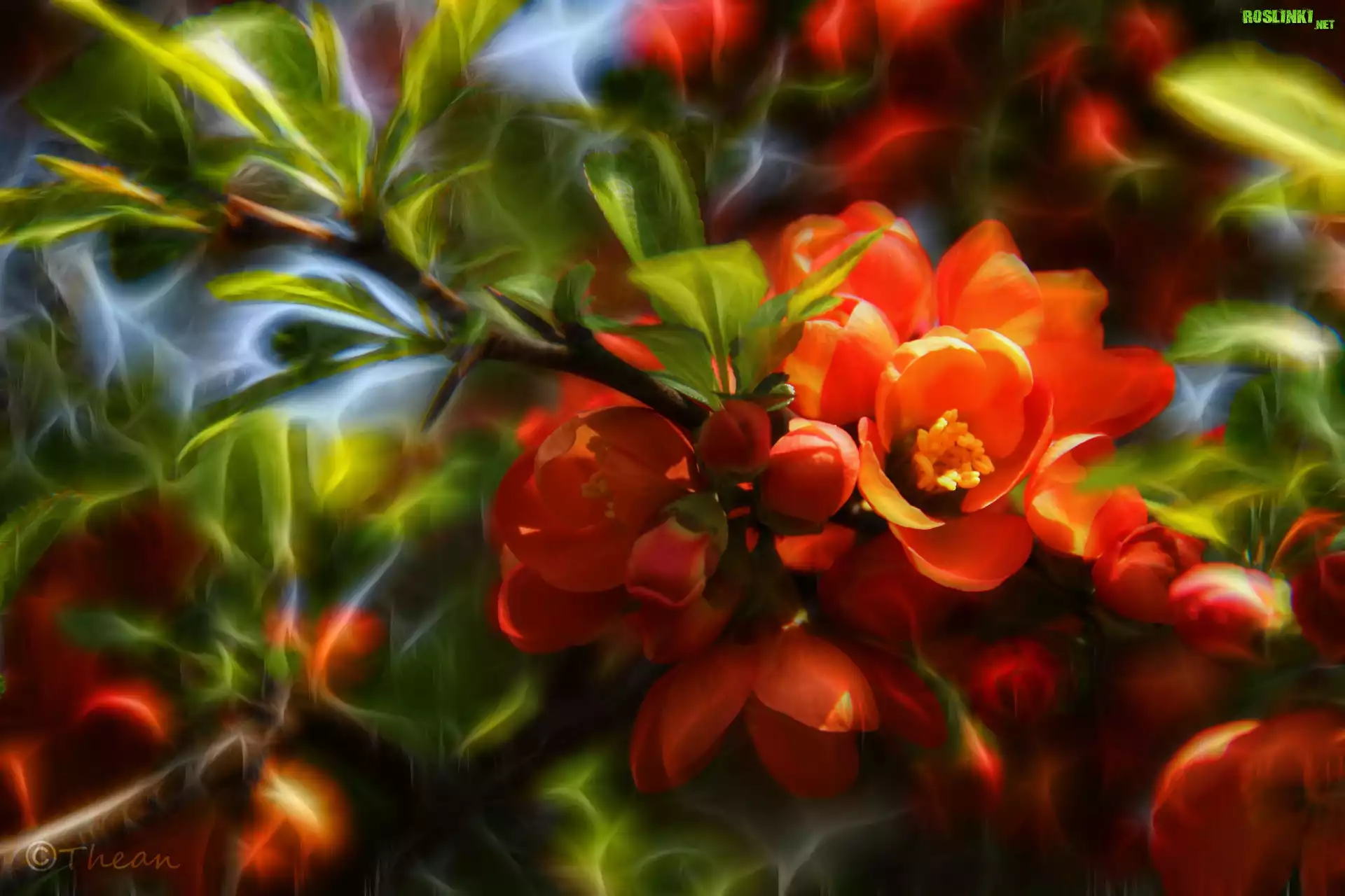 Rośliny: Pigwa, Czerwone, Kwiaty, Krzew, Fractalius