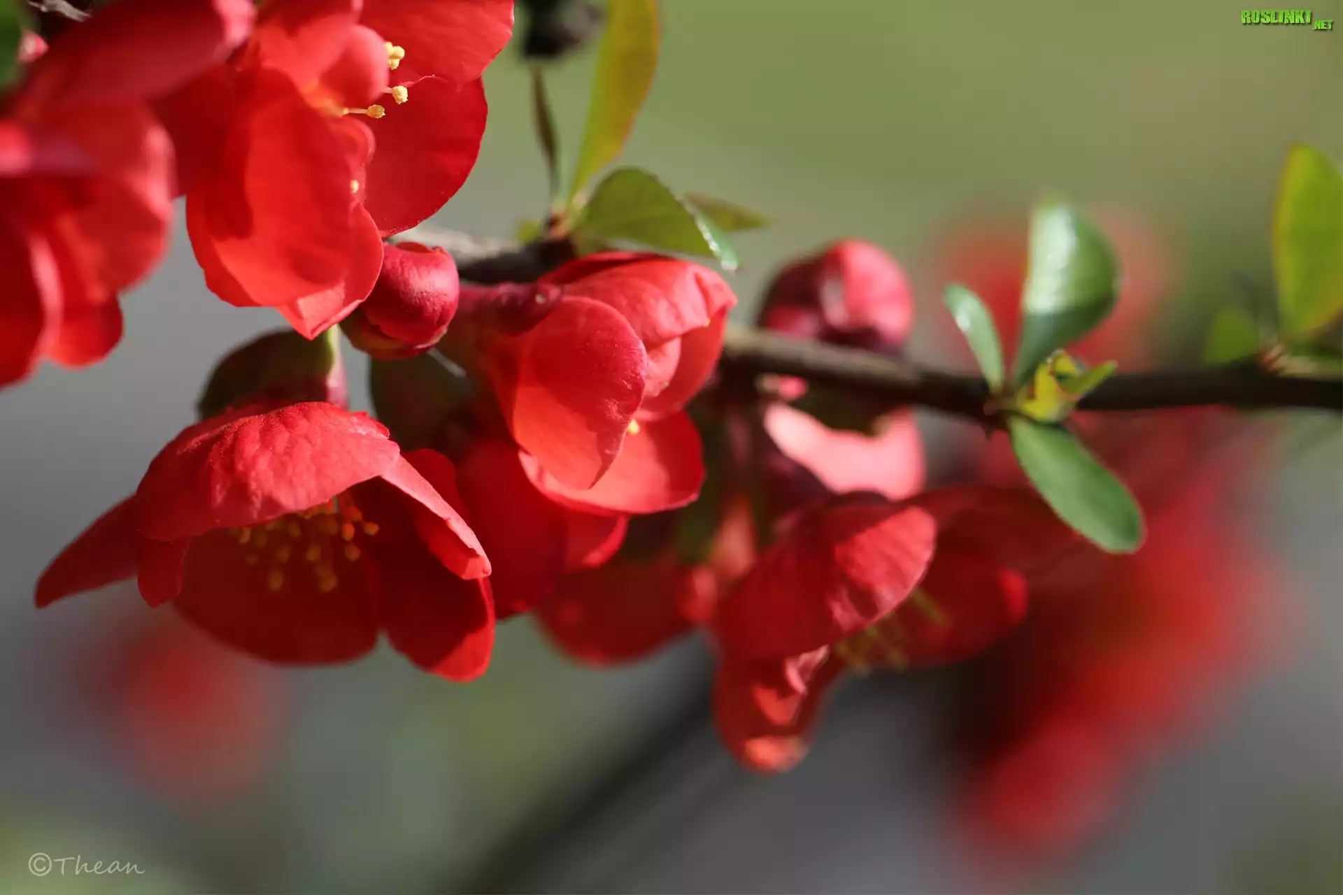 Rośliny: Pigwowiec Japoński, Krzew, Czerwone, Kwiaty