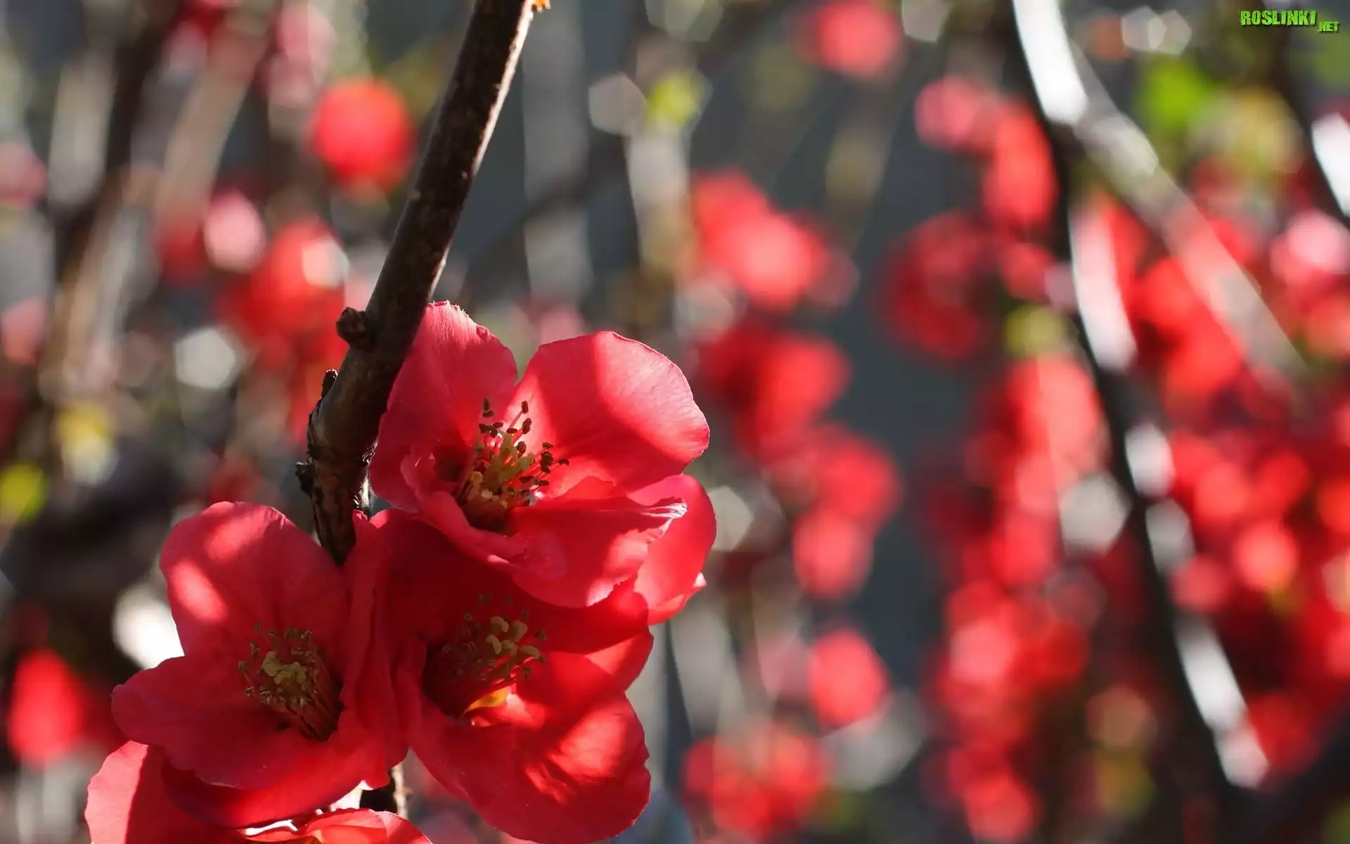 Rośliny: Pigwowiec japoński, Czerwone, Kwiatki, Krzew