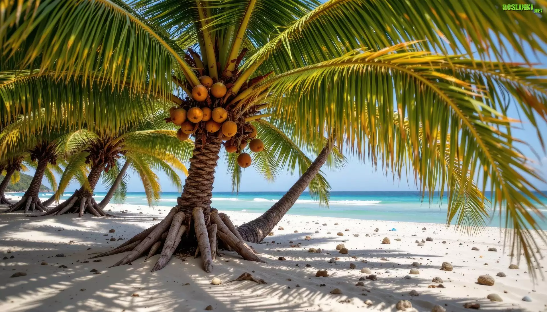 Rośliny: Palma, Kokosowa, Morze, Plaża, Kokosy, AI