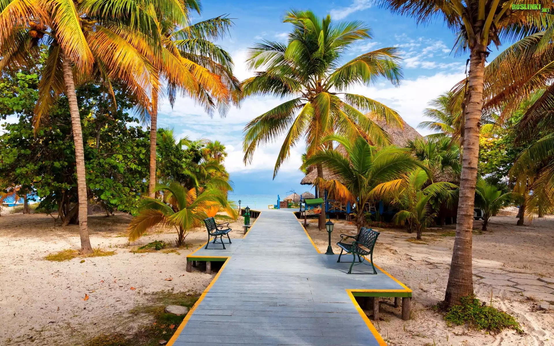 Rośliny: Plaża, Palmy, Podest, Ławki, Tropiki
