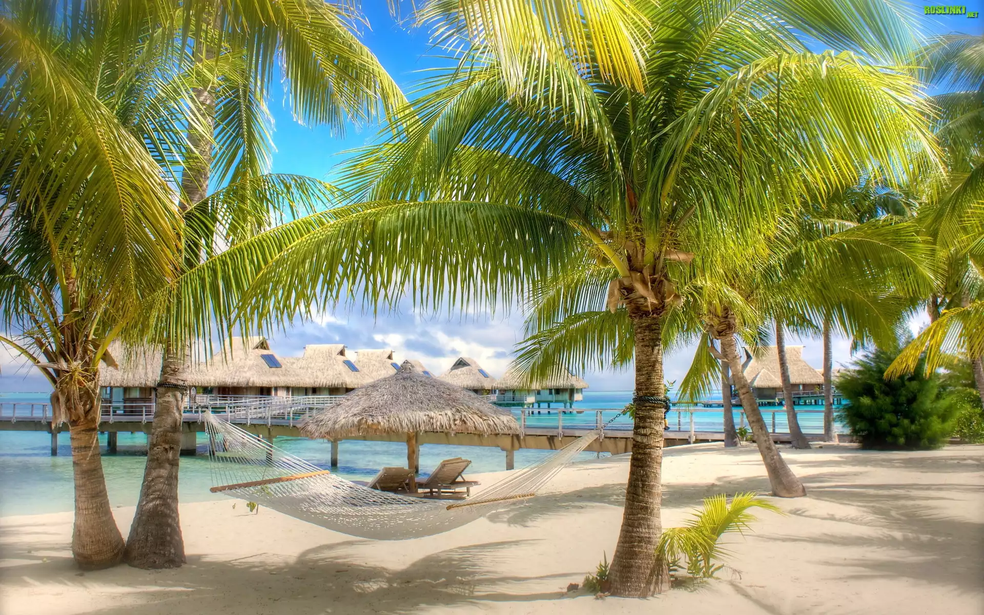Rośliny: Plaża, Palmy, Hamak, Domki