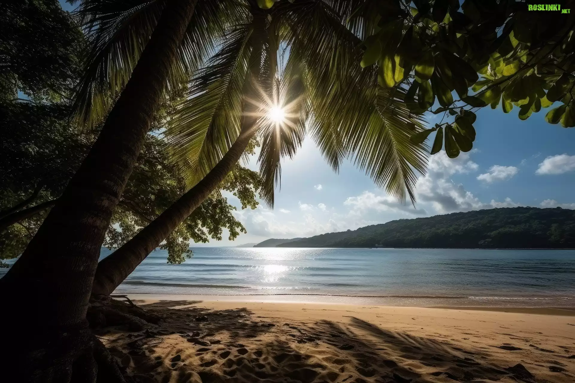Rośliny: Morze, Plaża, Palma, Promienie słońca