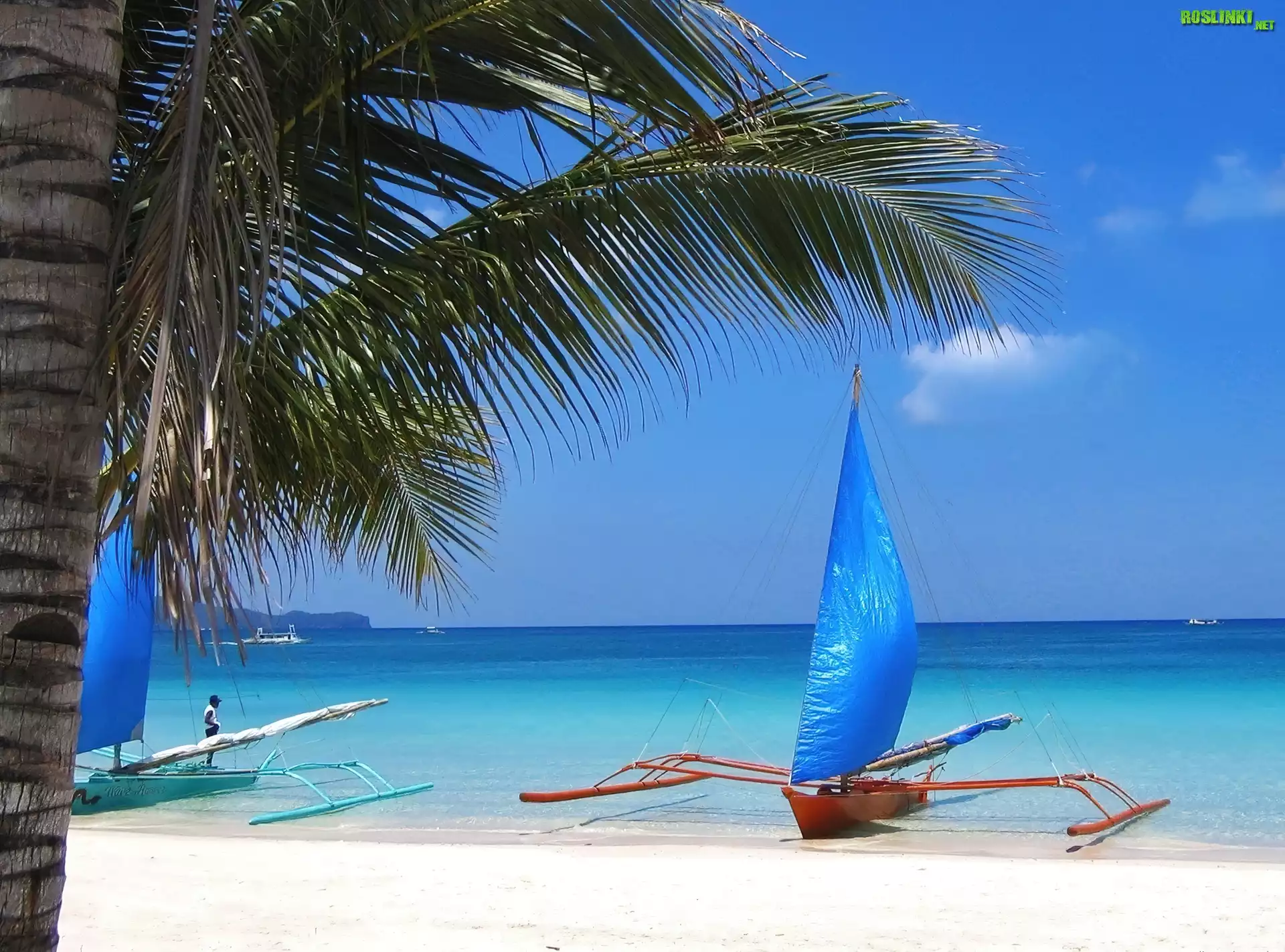 Rośliny: Plaża, Morze, Palmy, Łajby