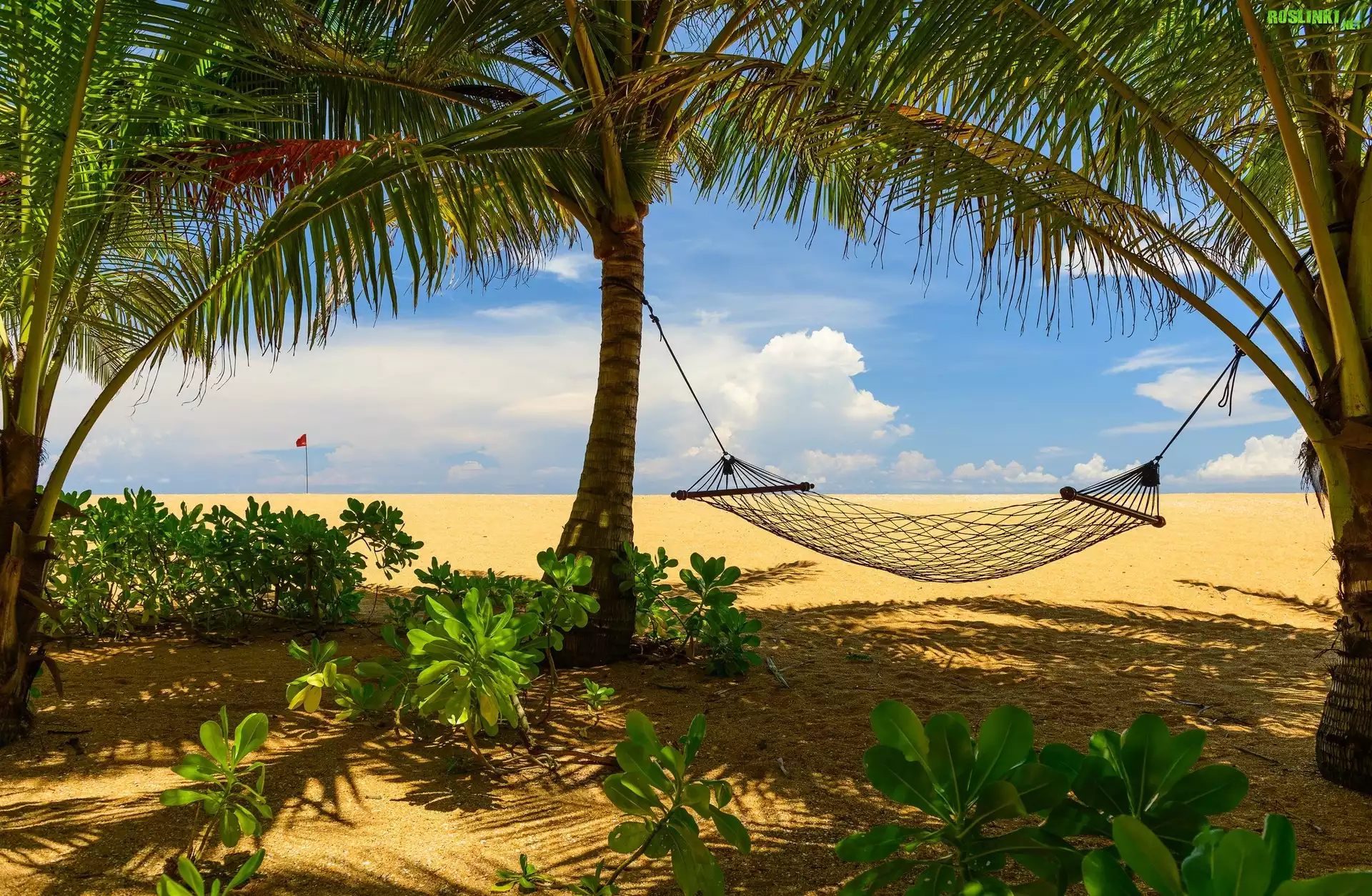 Rośliny: Plaża, Palmy, Rośliny, Hamak