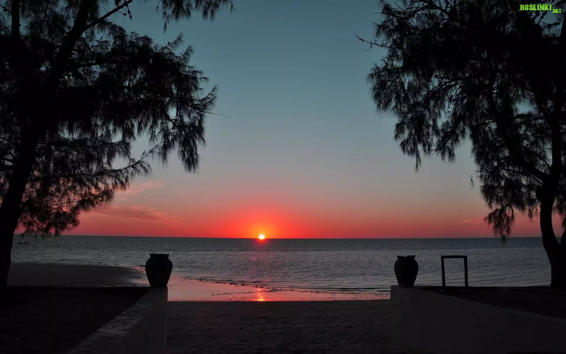 Rośliny: Plaża, Drzewa, Morze, Zachód, Słońca