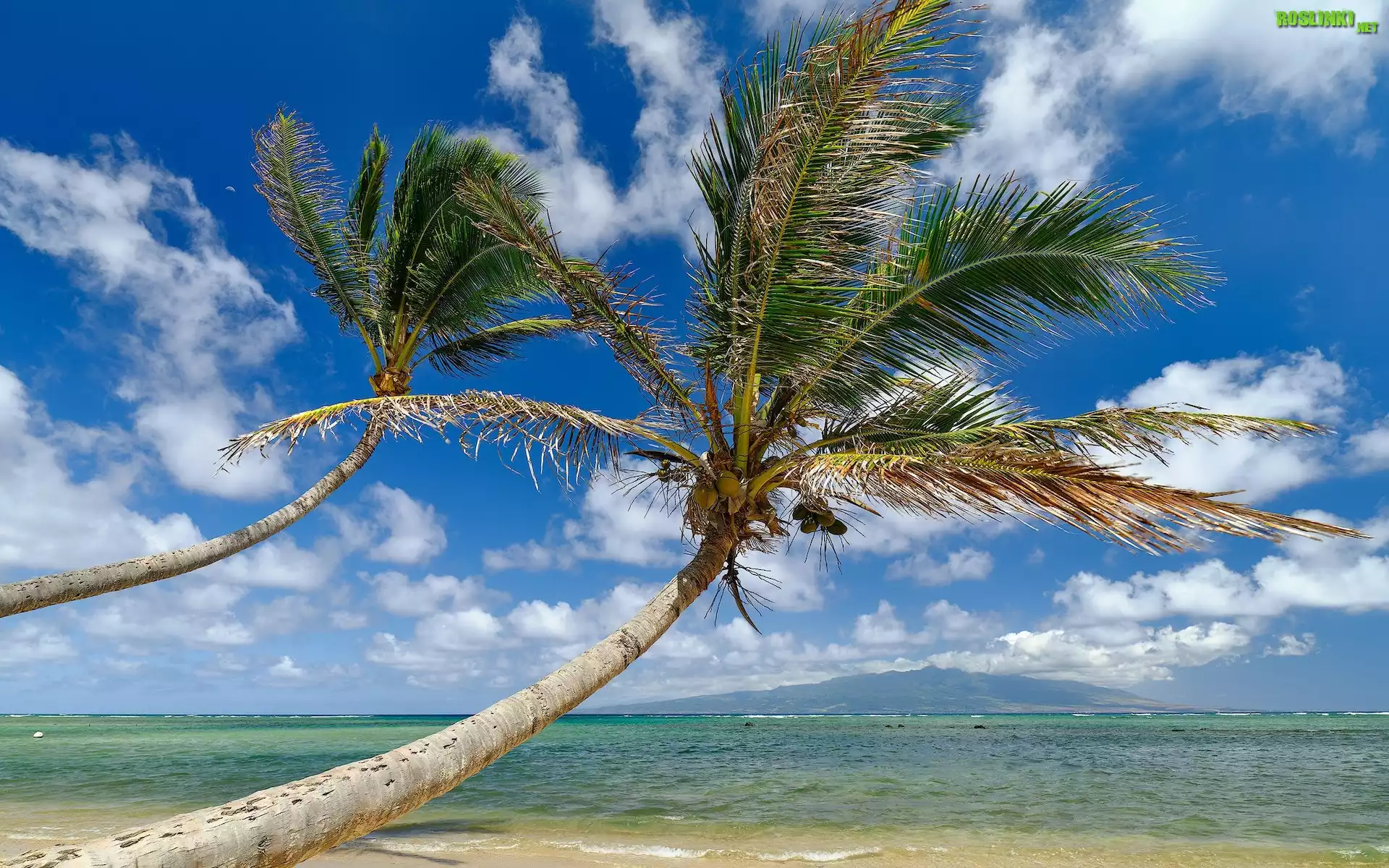Rośliny: Morze, Wybrzeże, Palmy, Pochylone