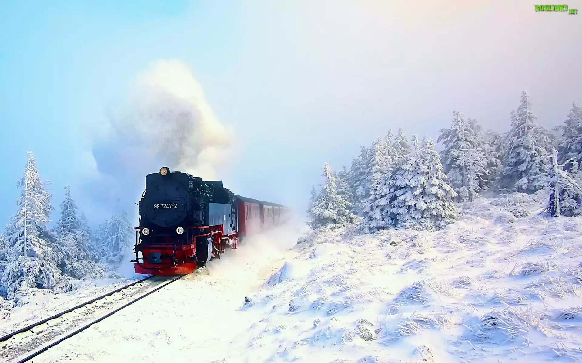 Rośliny: Pociąg, Lasy, Drzewa, Zima