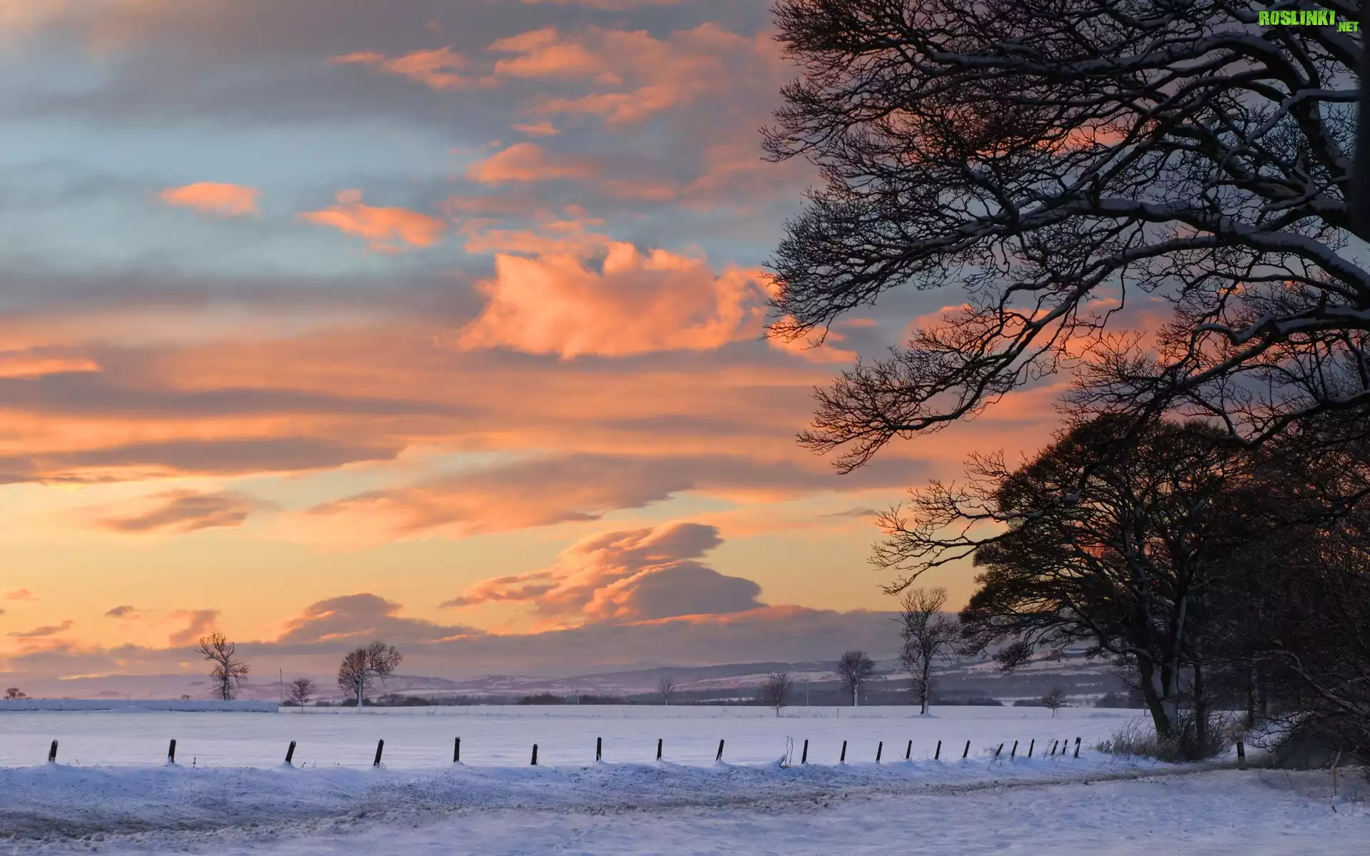 Rośliny: Pola, Góry, Drzewa, Chmury, Zima