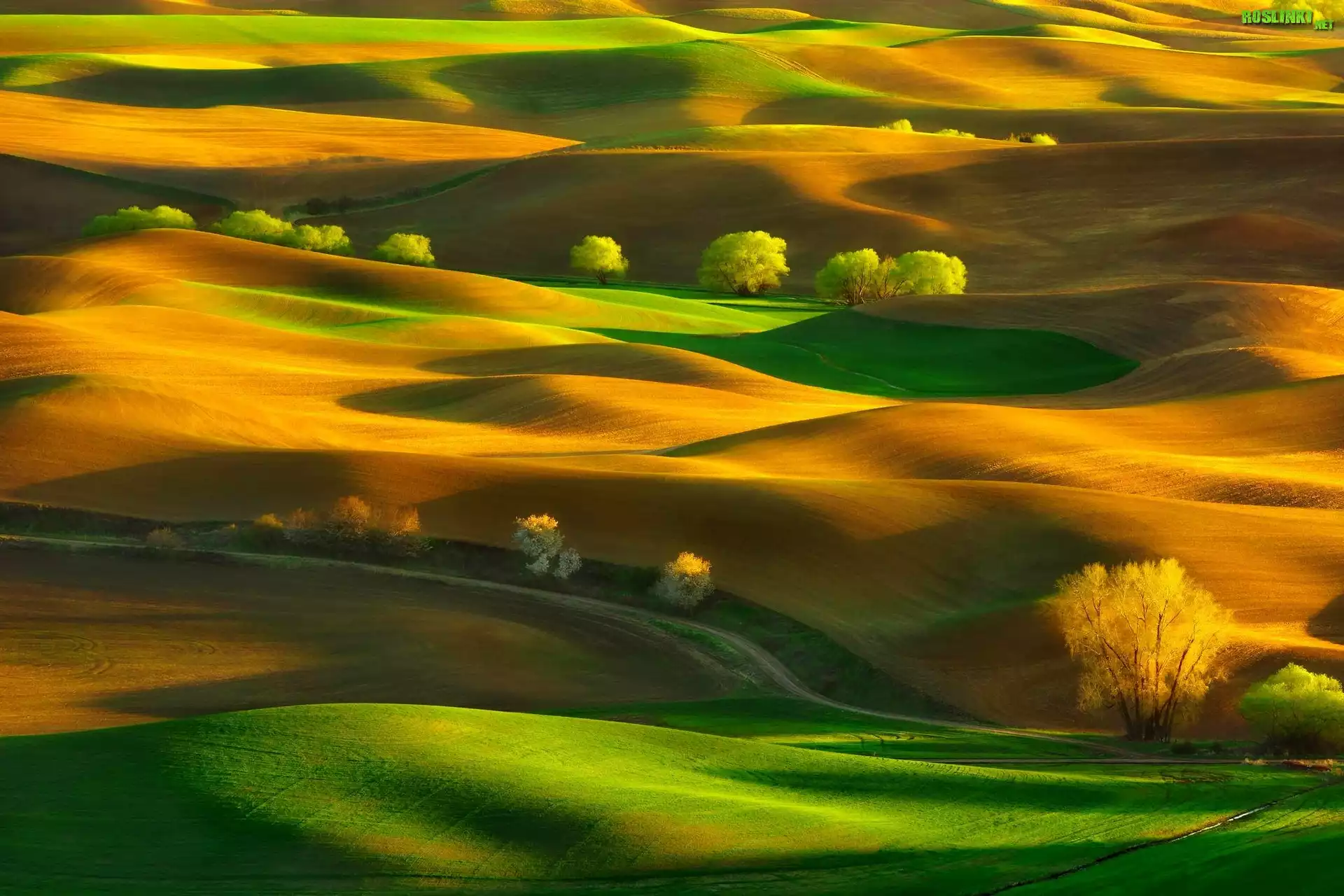 Rośliny: Pola, Uprawne, Pagórki, Drzewa, Cienie