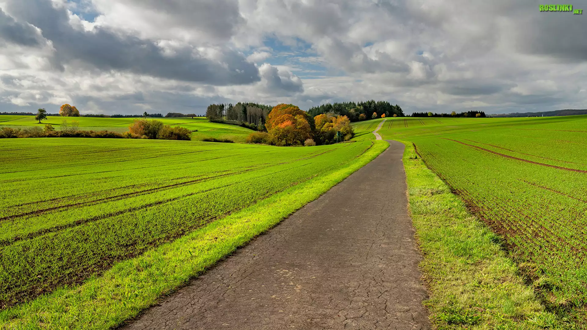 Rośliny: Droga, Pola, Las, Drzewa, Chmury