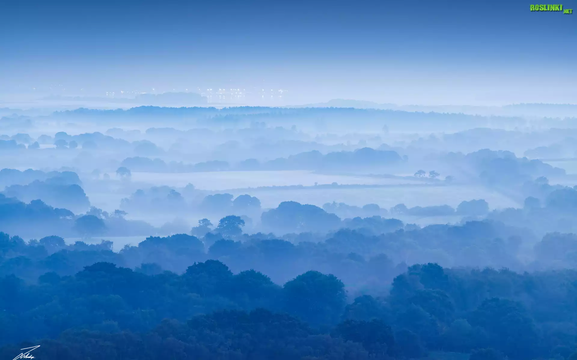 Rośliny: Anglia, Hrabstwo Dorset, Pola, Drzewa, Mgła