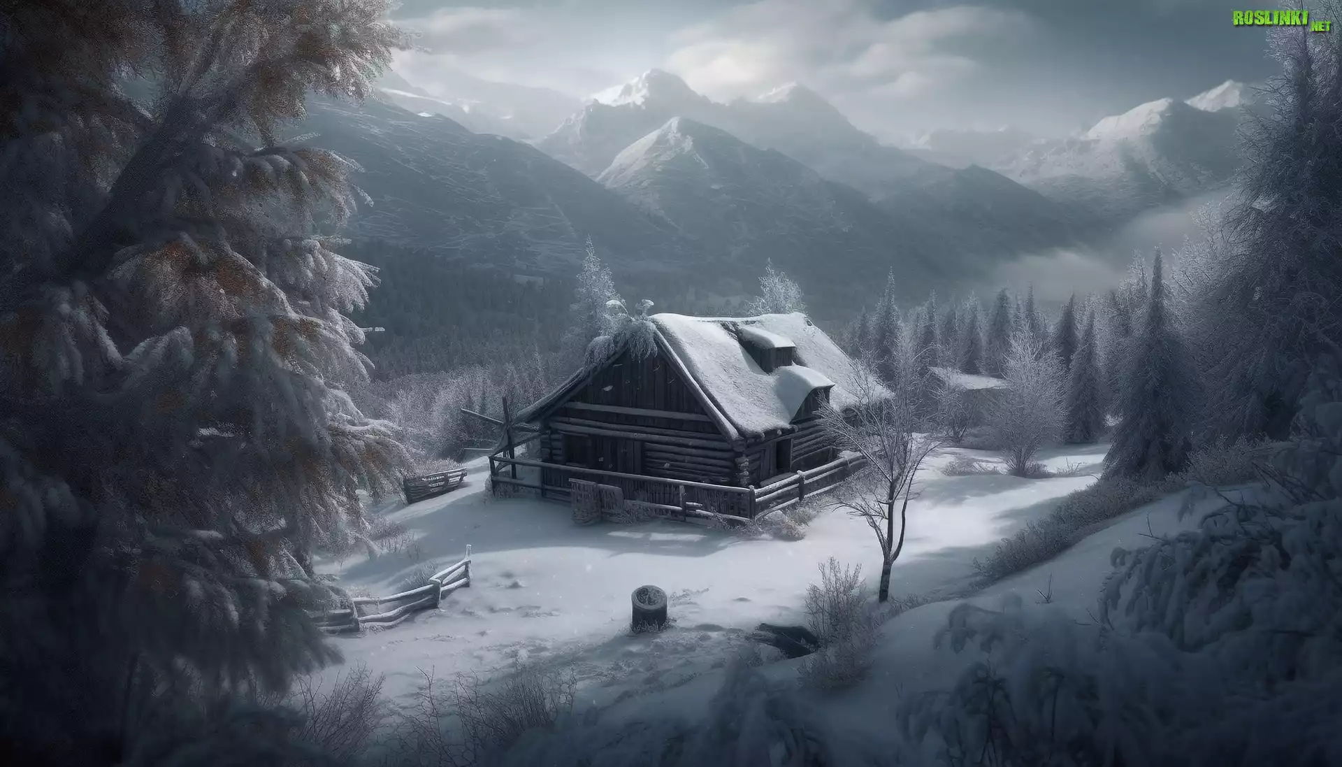 Rośliny: Zima, Dom, Drzewa, Polana, Góry, Grafika