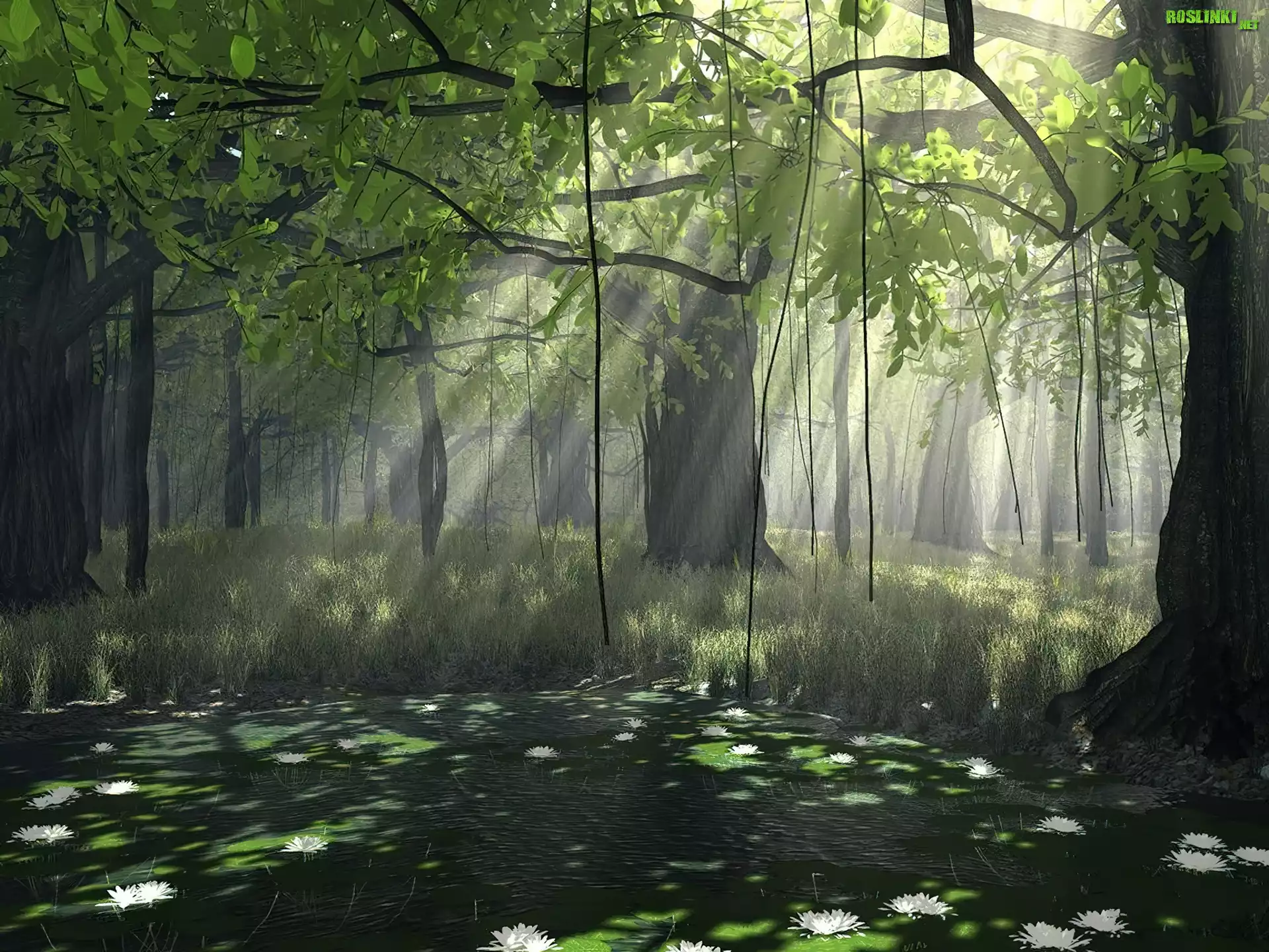 Rośliny: Polana, W, Lesie, Przebijające, Światło