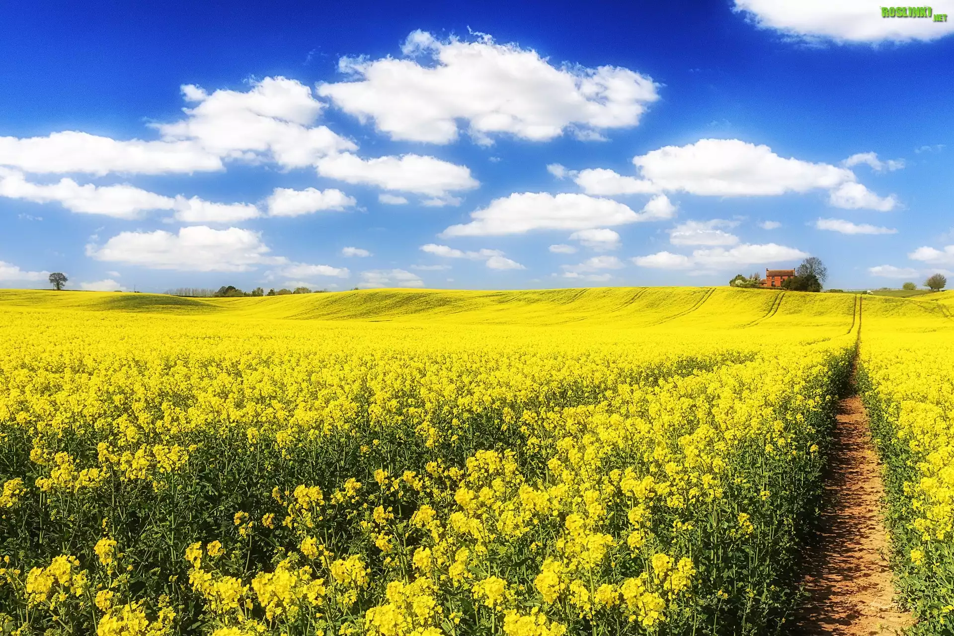 Rośliny: Pole, Rzepak, Budynki, Dróżka