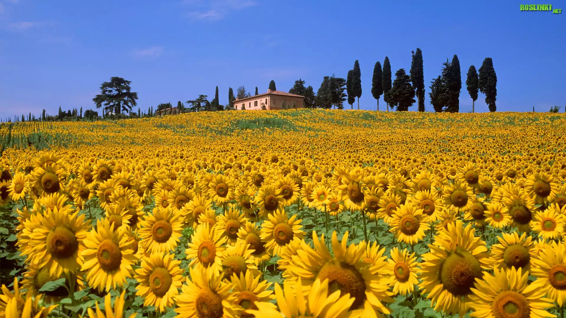 Rośliny: Pole, Słoneczników, Dom, Drzewa