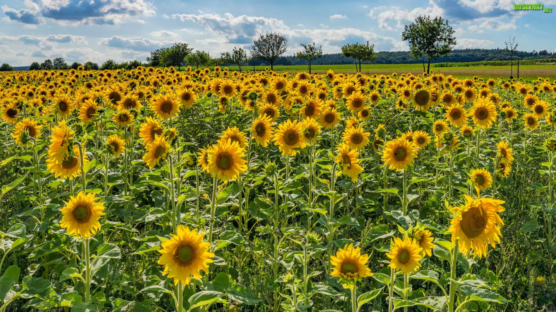 Rośliny: Pole, Słoneczniki, Drzewa