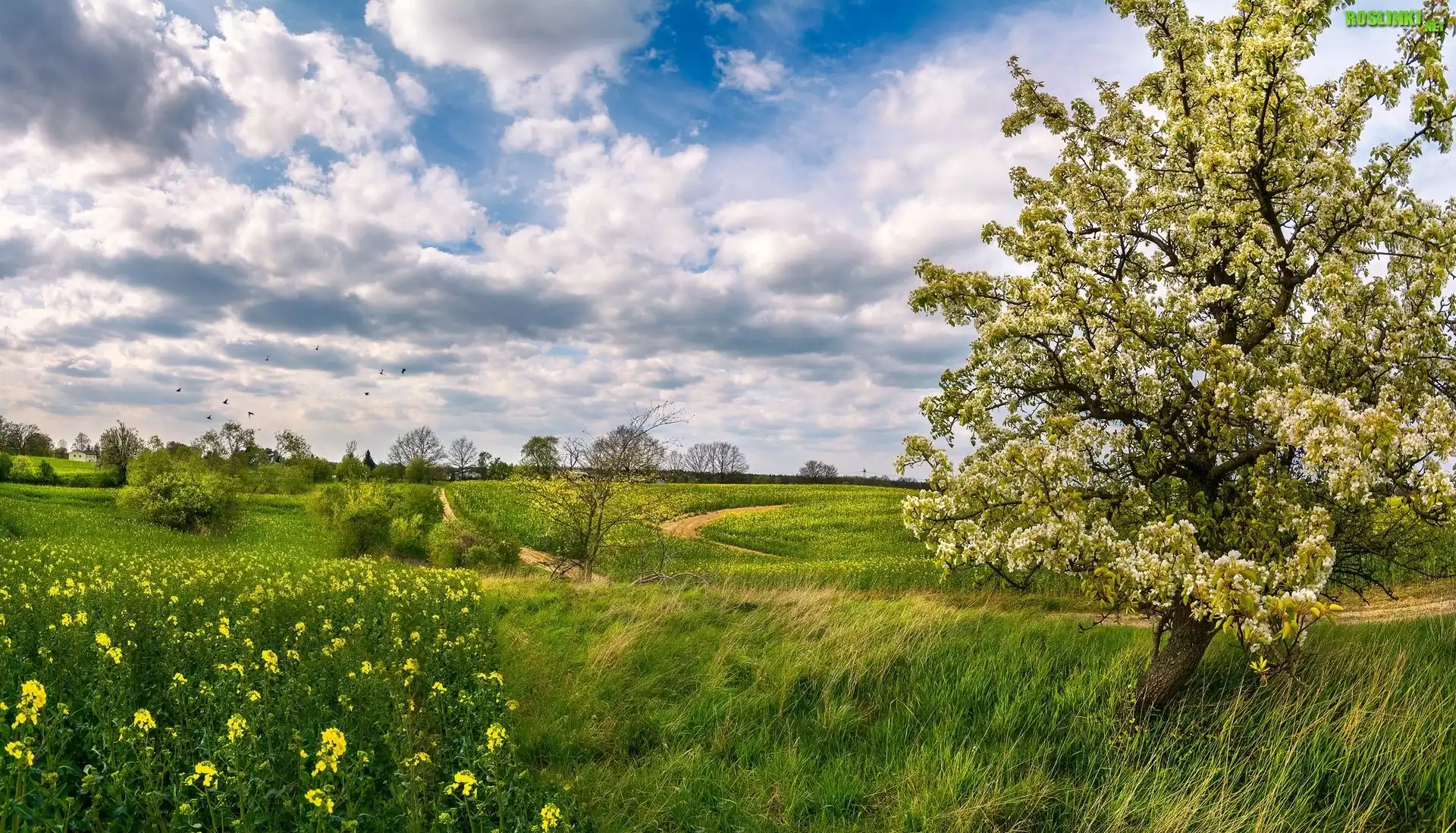Rośliny: Pole, Łąka, Drzewo, Chmury