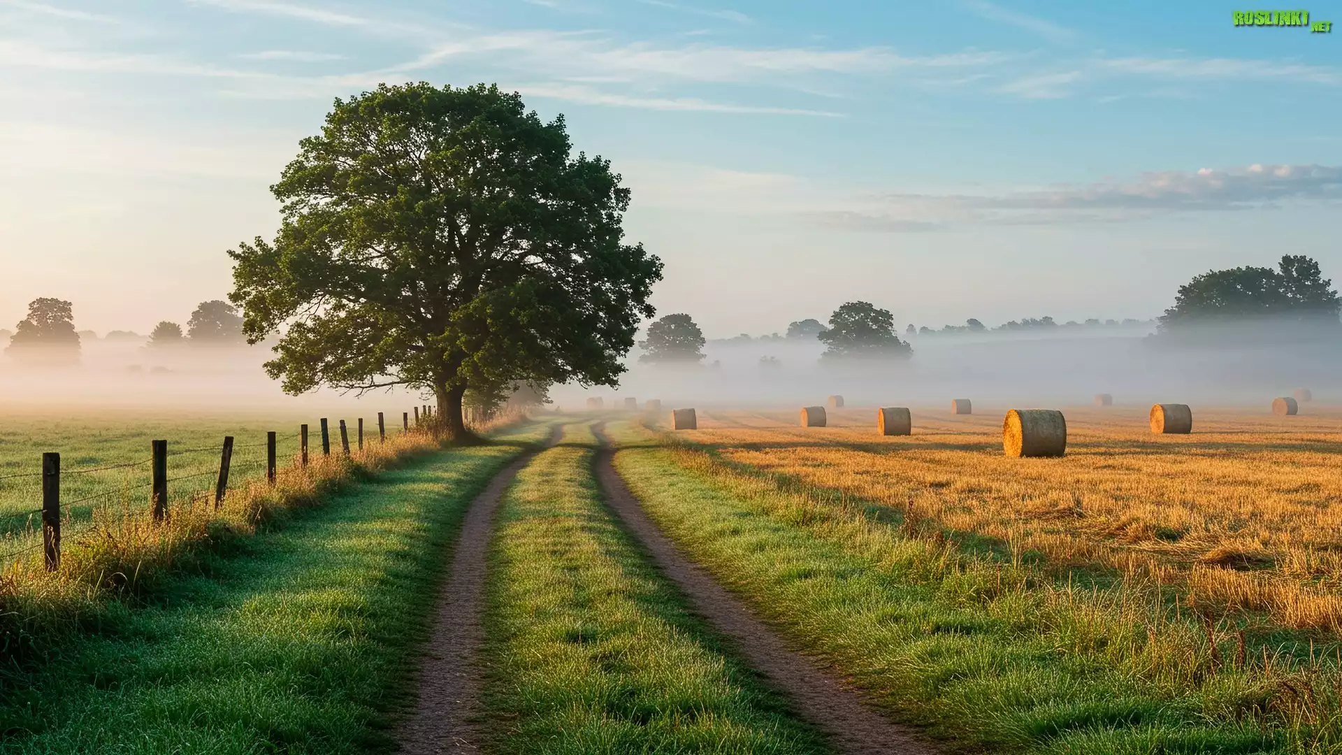 Rośliny: Jesień, Droga, Drzewo, Pole, Mgła, Bele, Słomy