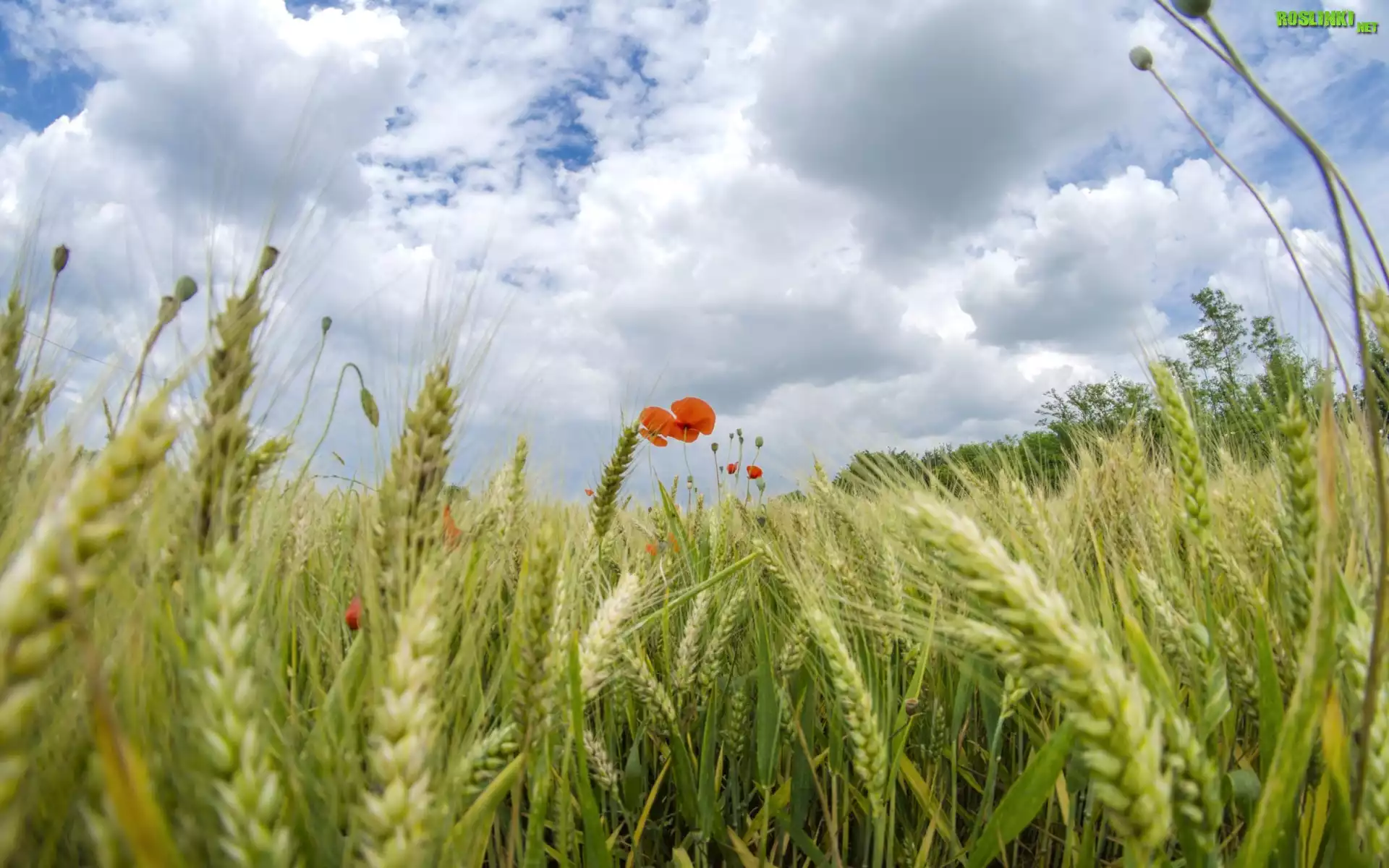 Rośliny: Pole, Zboże, Maki, Niebo