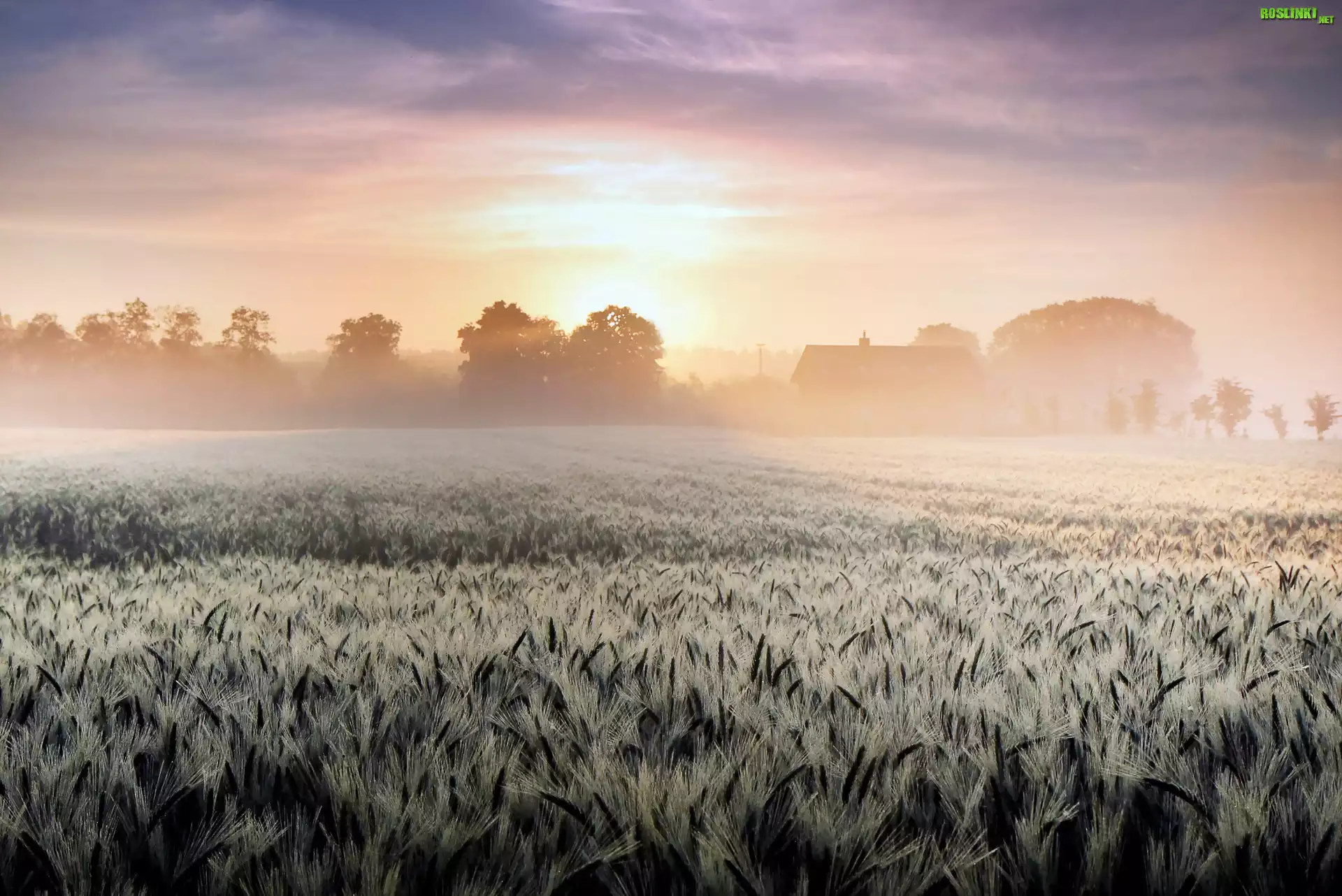 Rośliny: Pole, Wschód, Słońca, Mgła, Zboże