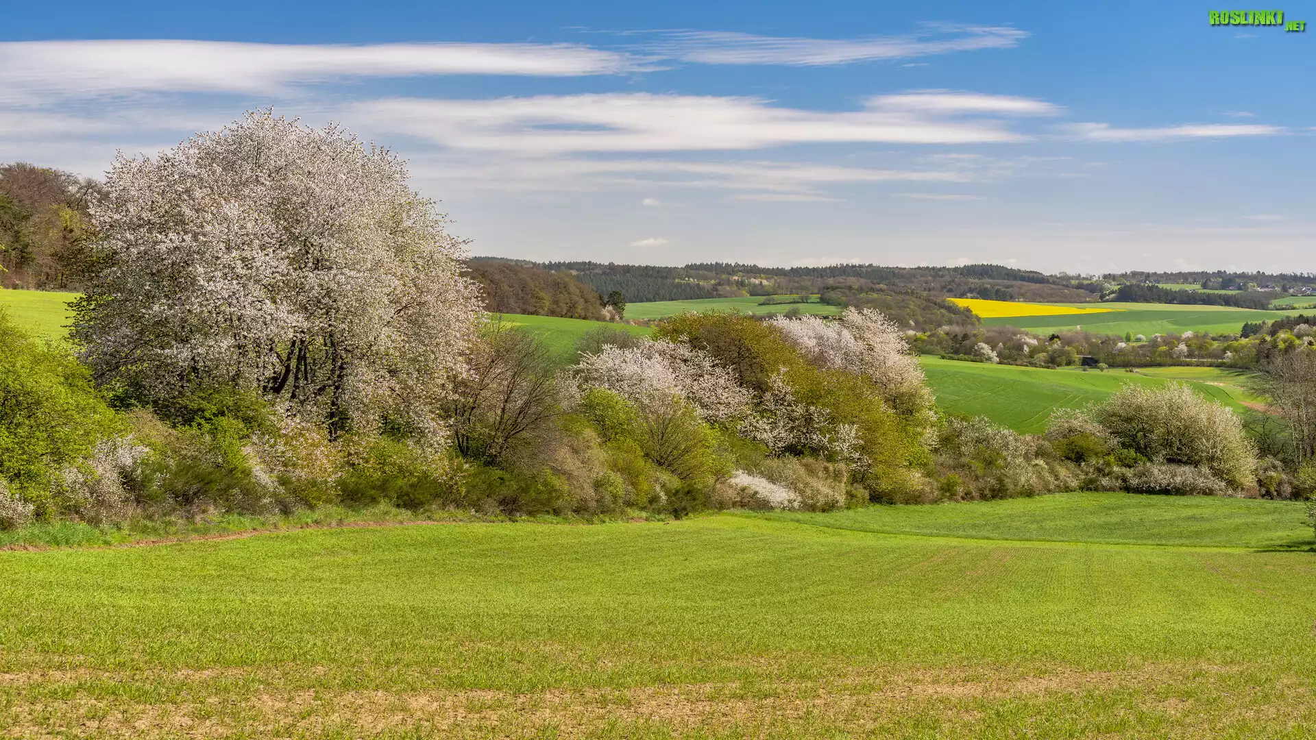 Rośliny: Łąka, Pole, Okwiecone, Drzewa, Wiosna