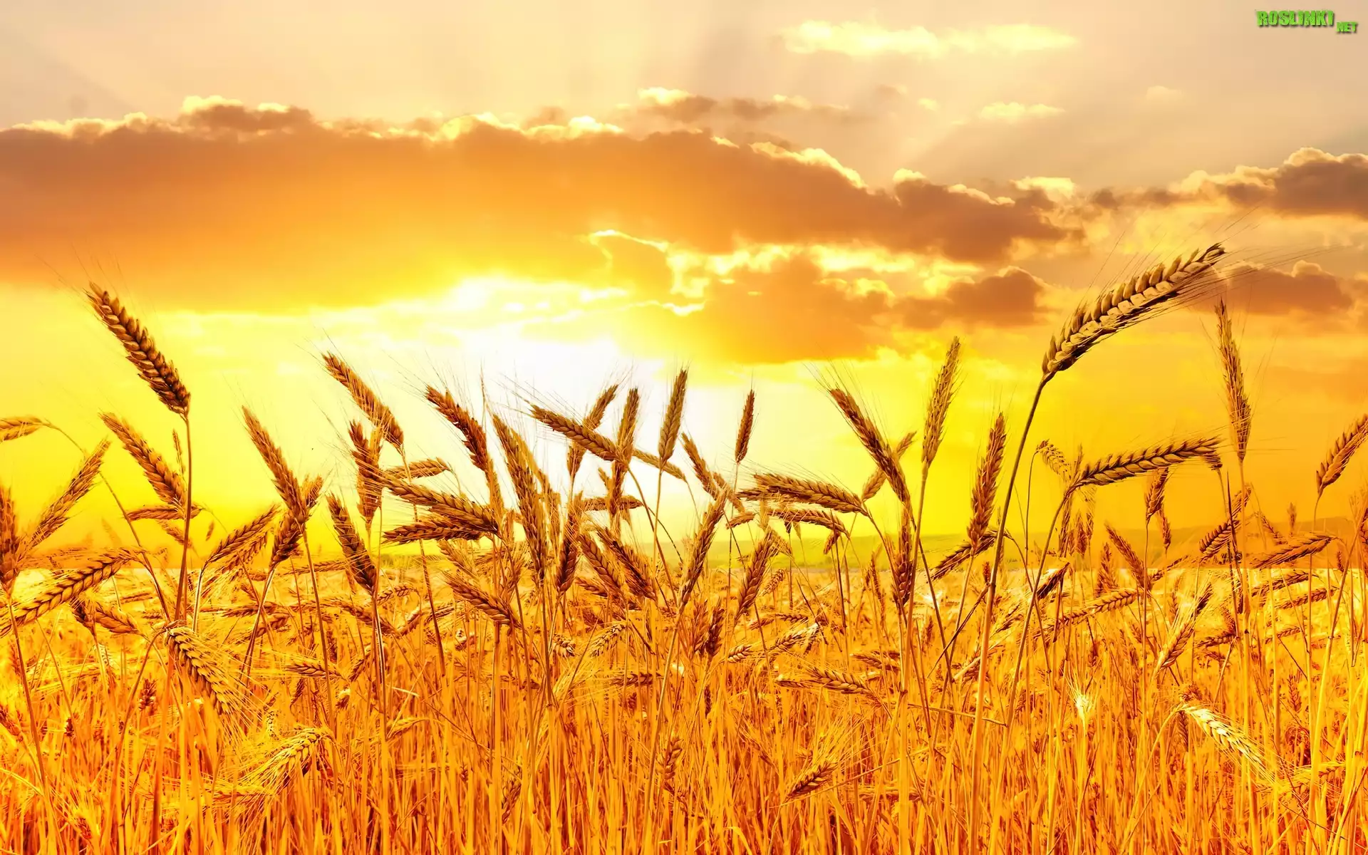 Rośliny: Pole, Zboże, Chmury, Promienie, Słońca