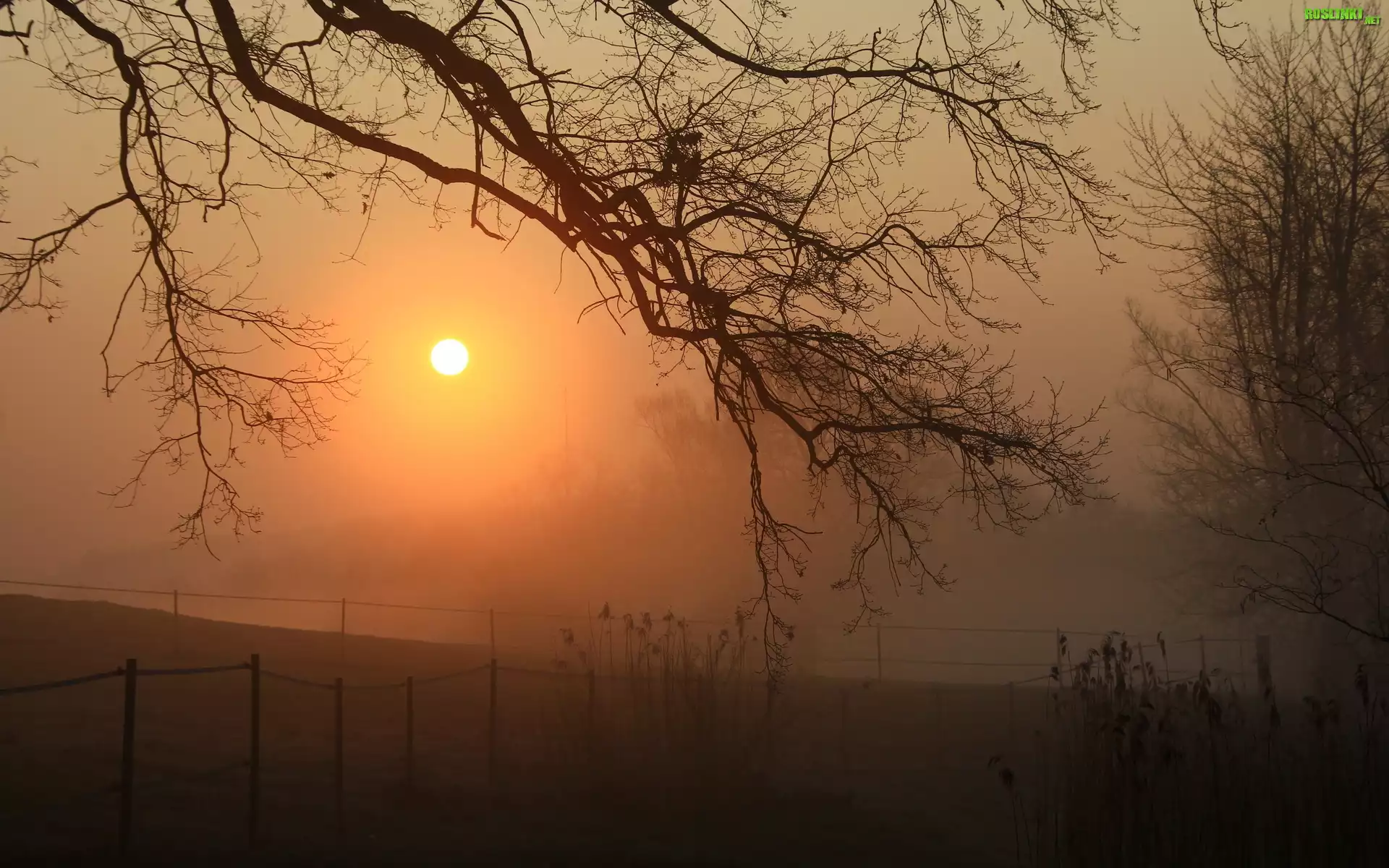 Rośliny: Pole, Drzewa, Mgła, Przebijające, Światło