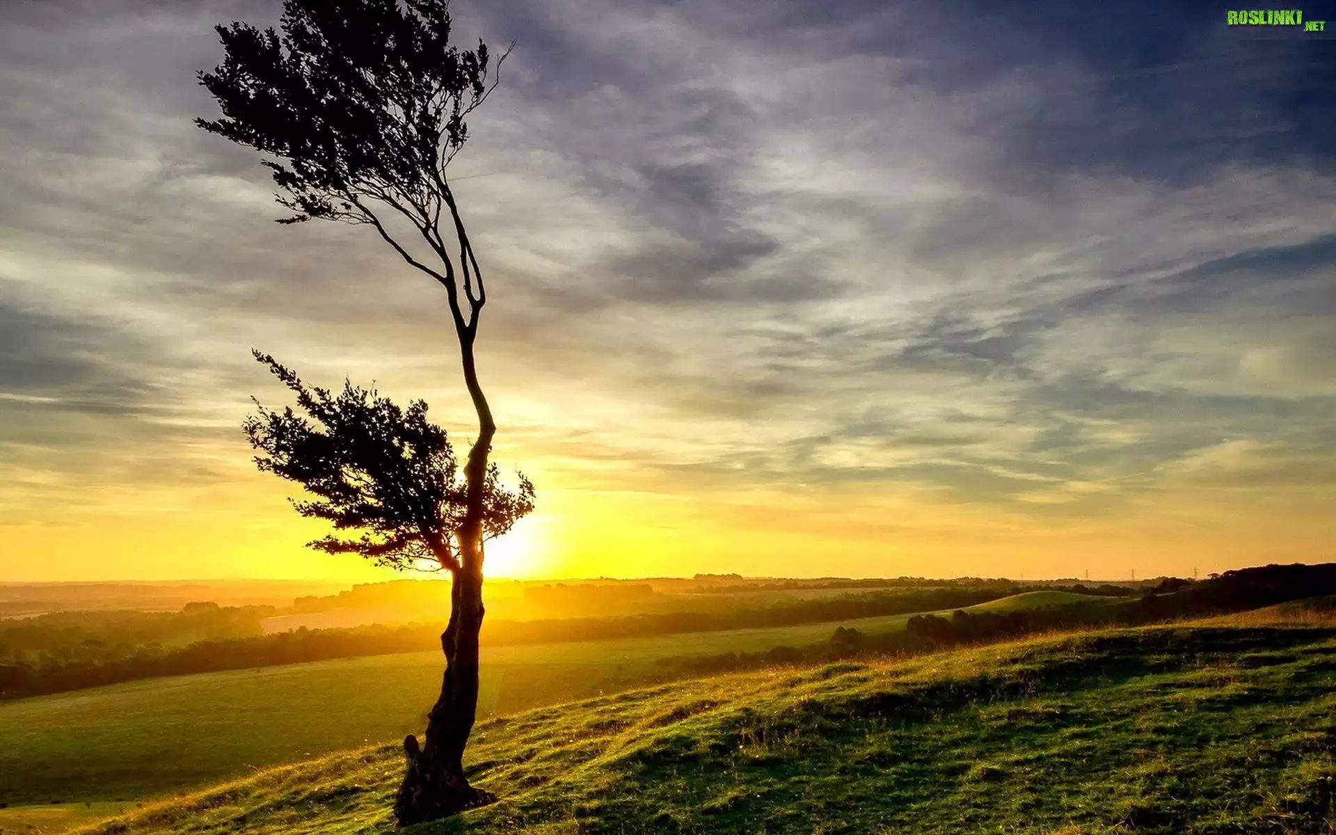 Rośliny: Pole, Drzewo, Słońce, Niebo