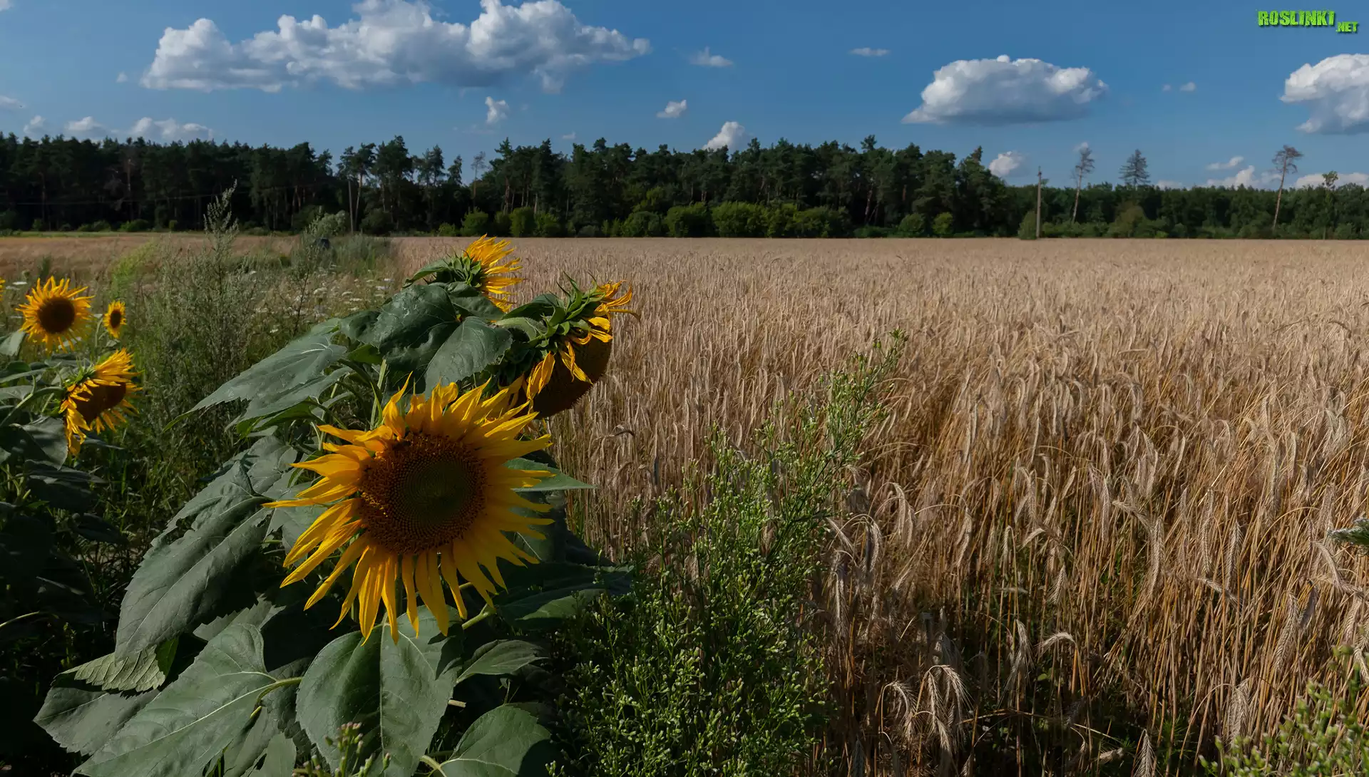 Rośliny: Pole, Zboże, Słoneczniki, Drzewa
