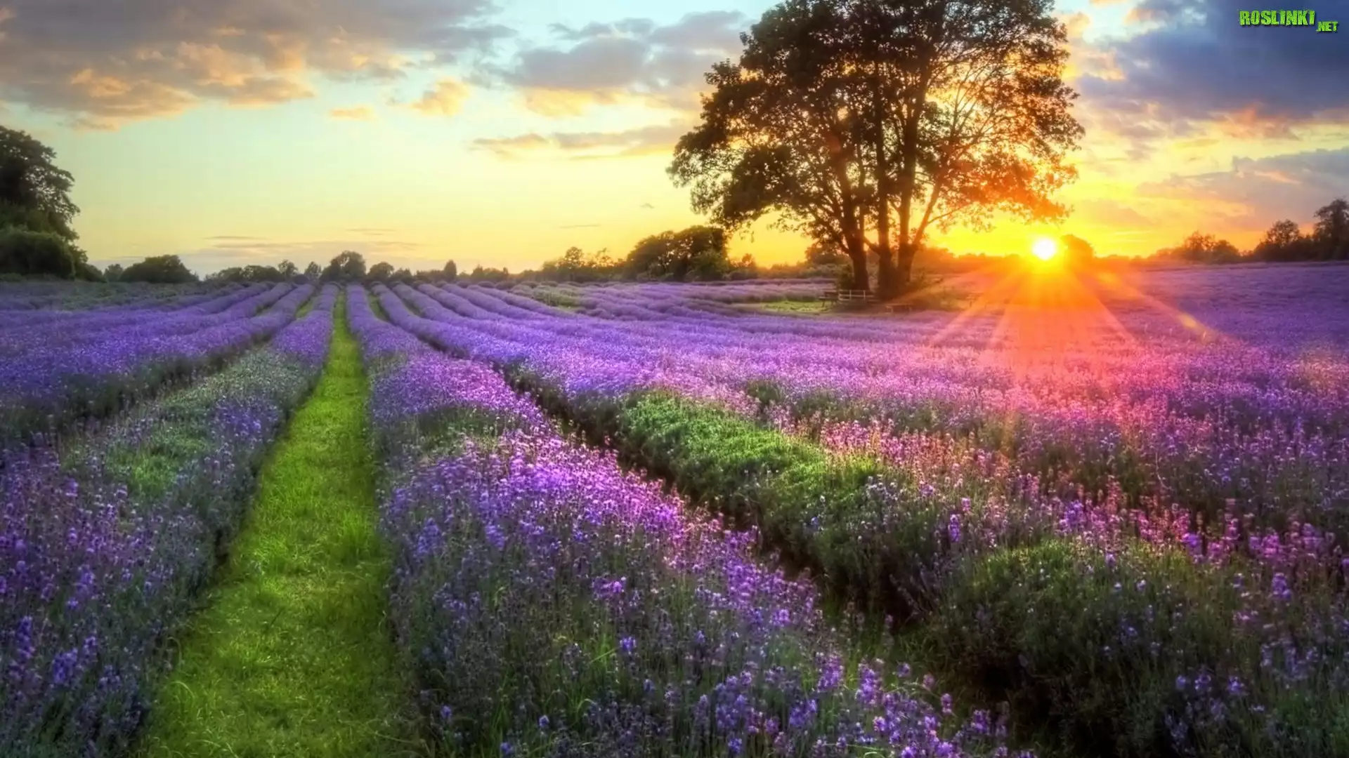 Rośliny: Pole, Lawenda, Drzewo, Zachód, Słońca