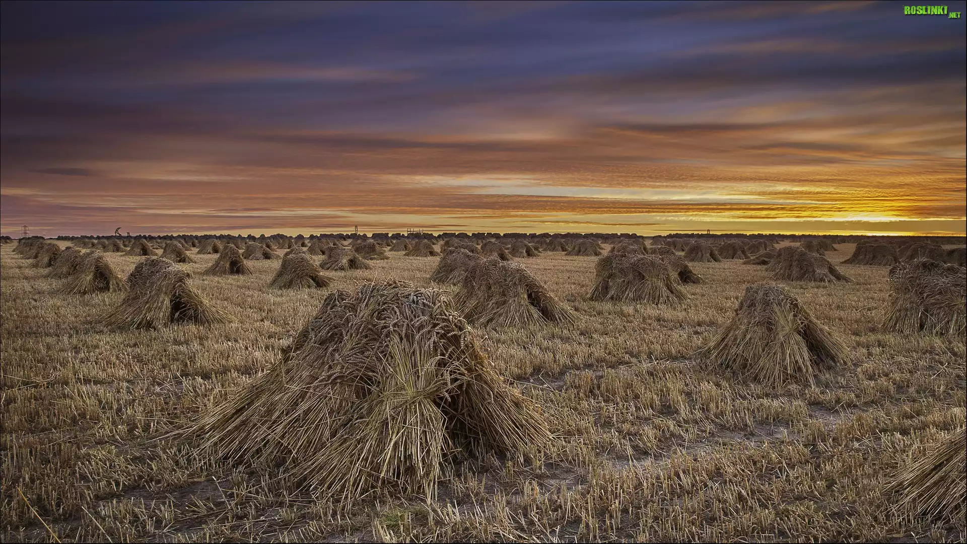 Rośliny: Pole, Snopy, Zachód, Słońca