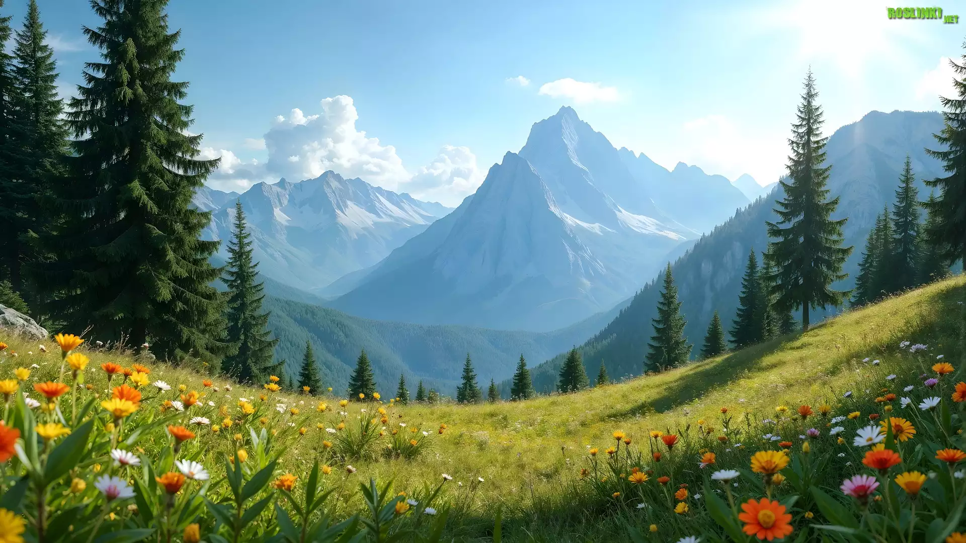 Rośliny: Łąka, Polne, Kwiaty, Drzewa, Góry