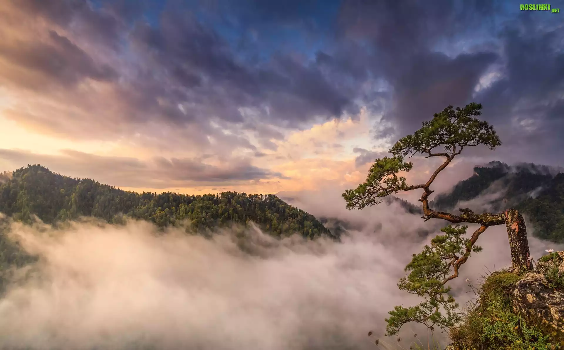 Rośliny: Góry, Mgła, Sosna, Skały, Las, Chmury, Szczyt, Sokolica, Pieniny, Polska