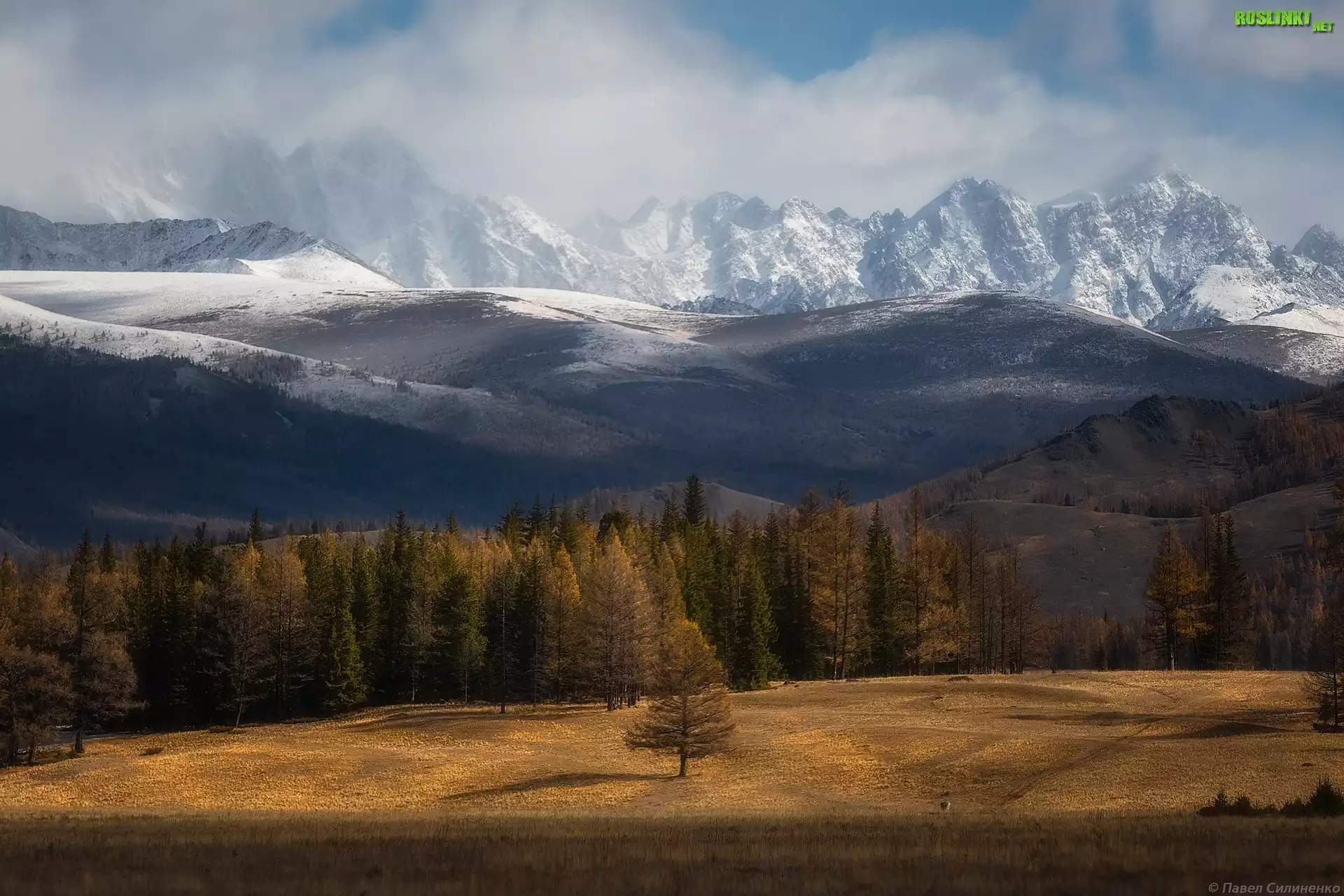 Rośliny: Góry Południowoczujskie, Ośnieżone, Szczyty, Jesienne, Drzewa, Ałtaj, Rosja