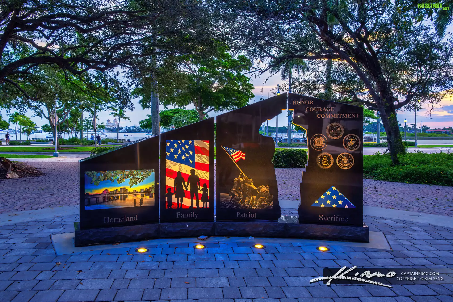Stany Zjednoczone, Floryda, Trinity Park, West Palm Beach, Pomnik rodzin Gold Star, Drzewa, Oświetlenie |