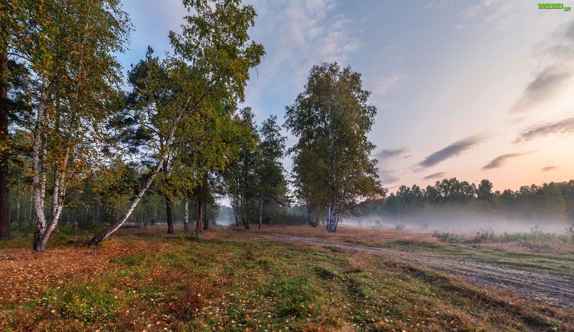 Rośliny: Poranek, Mgła, Drzewa, Brzozy, Las, Jesień
