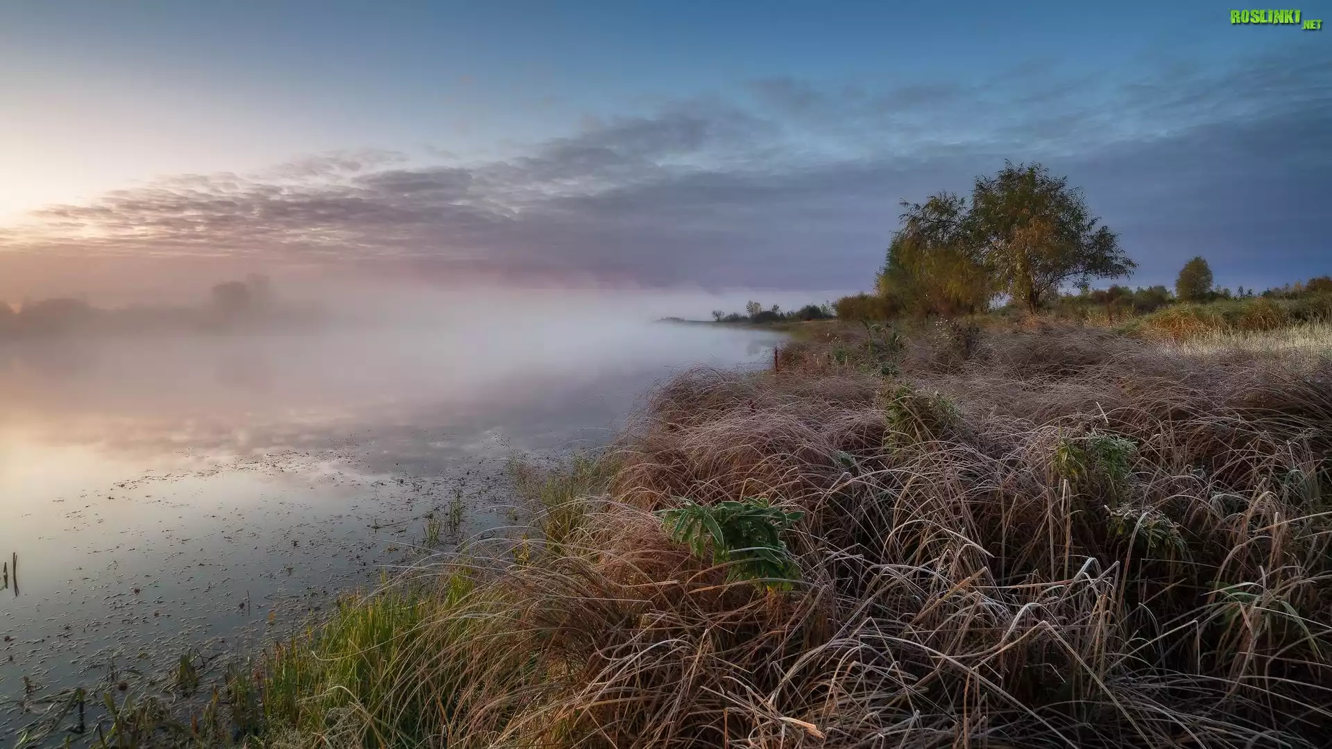 Rośliny: Poranek, Jezioro, Mgła, Sucha, Trawa, Drzewo