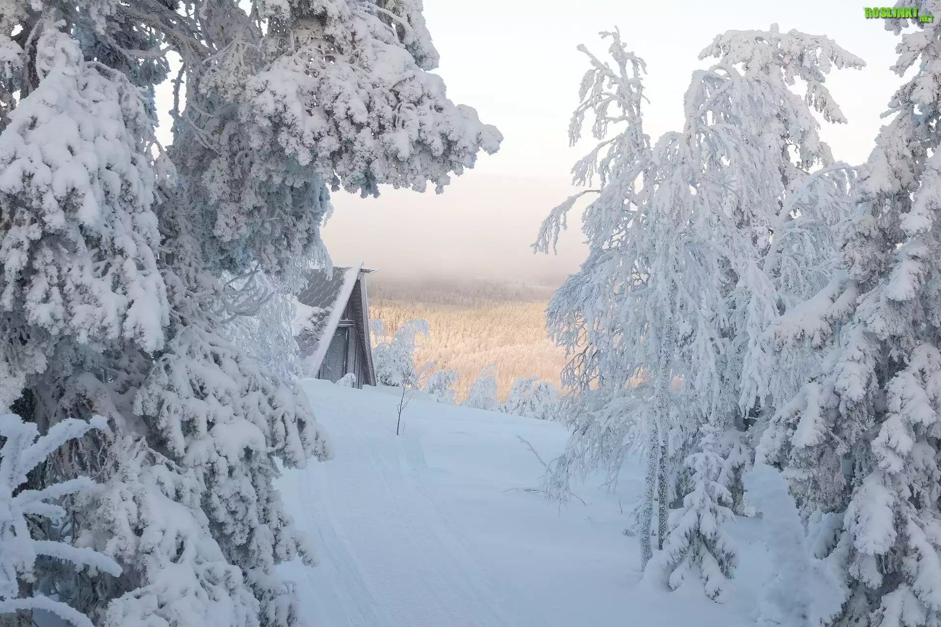 Rośliny: Zima, Drzewa, Dom, Poranek