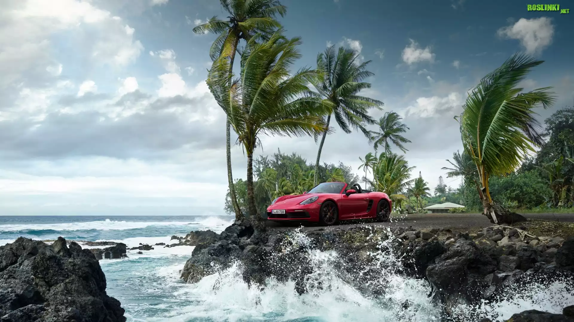 Rośliny: Porsche 718 Cayman GTS, Skały, Palmy