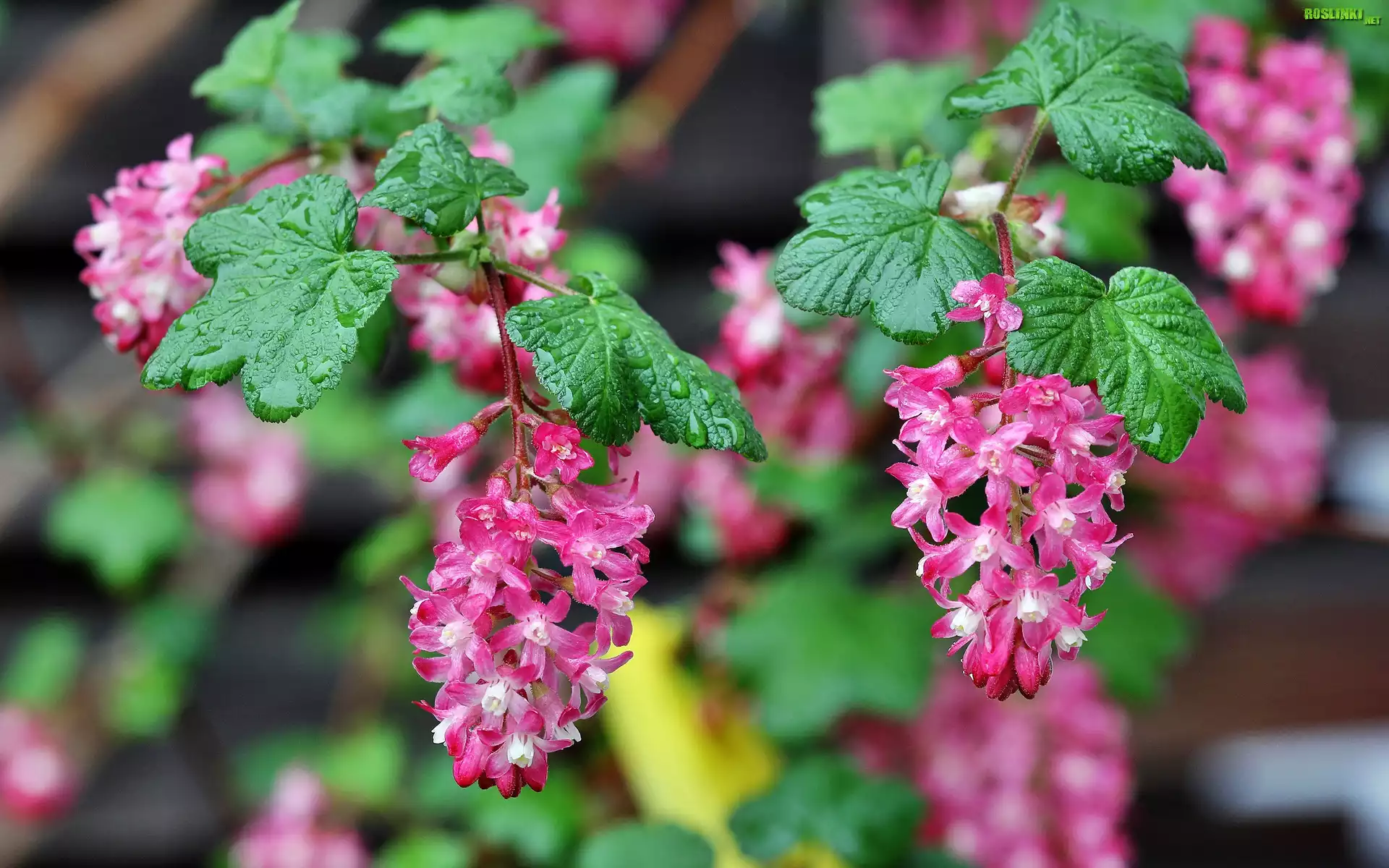 Rośliny: Porzeczka krwista, Różowe, Kwiaty, Krople