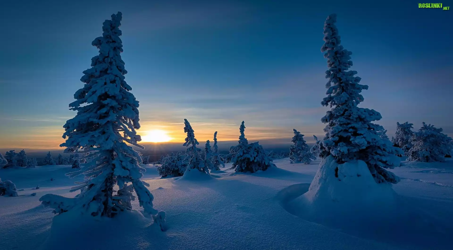 Finlandia, Region Laponia, Gmina Posio, Park Narodowy Riisitunturi, Zima, Zachód słońca, Ośnieżone, Drzewa, Świerki |
