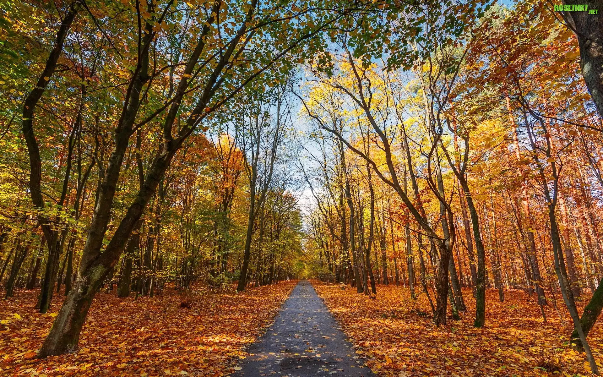 Rośliny: Jesień, Las, Droga, Pożółkłe, Drzewa, Opadłe, Liście