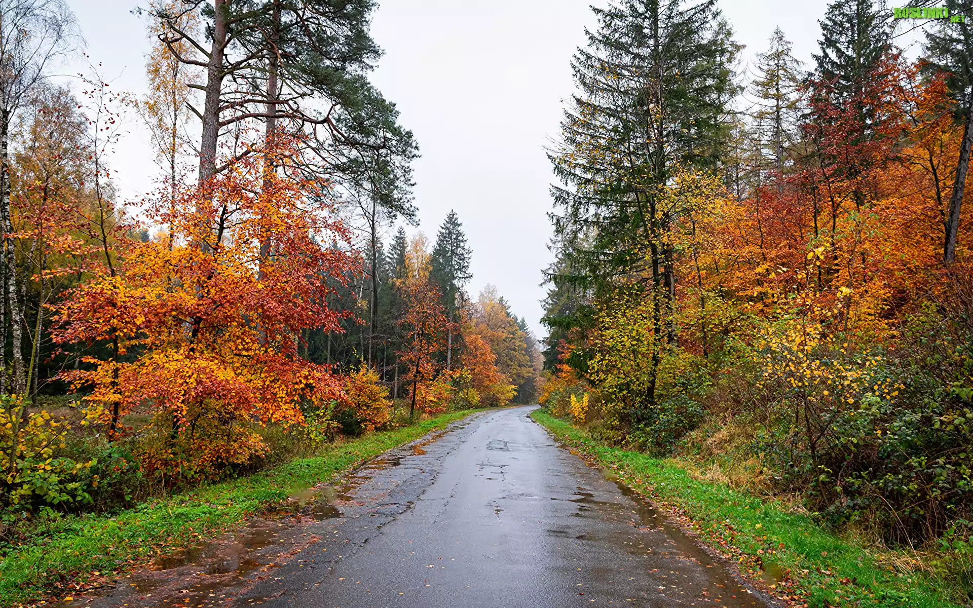 Rośliny: Jesień, Droga, Las, Pożółkłe, Drzewa, Las