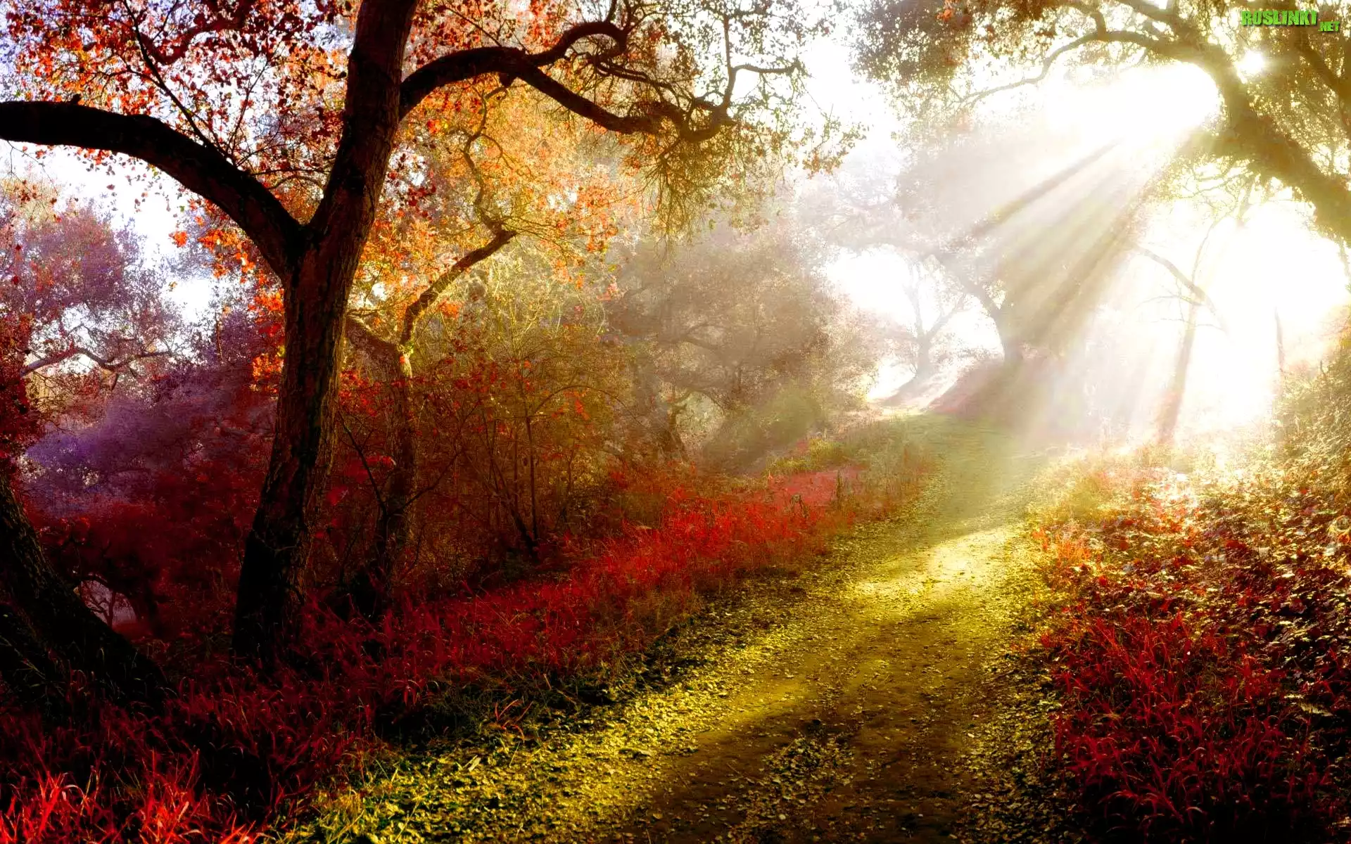 Rośliny: Promienie Słońca, Kolorowe, Drzewa, Ścieżka