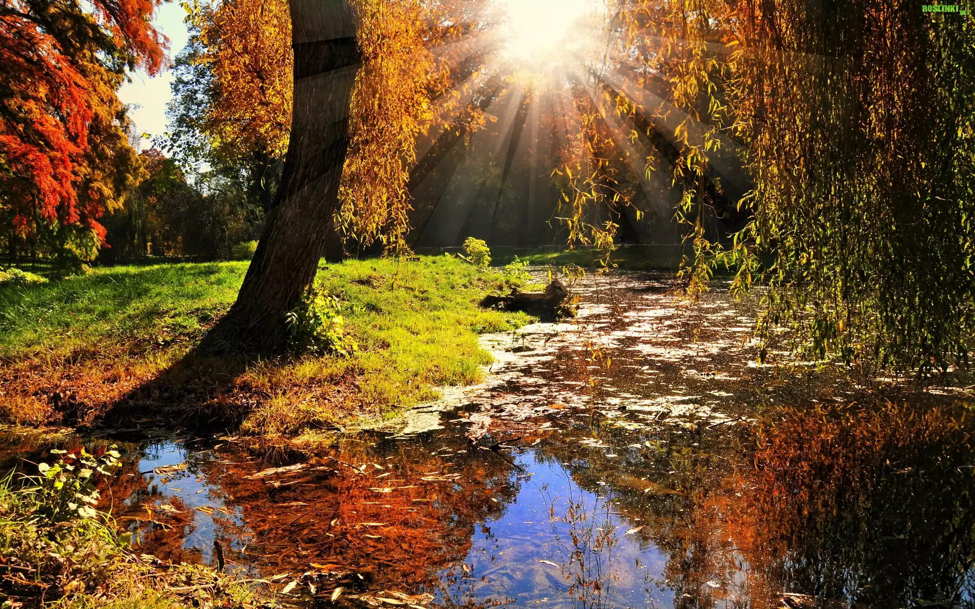 Rośliny: Promienie, Słońca, Rzeka, Drzewa, Jesień