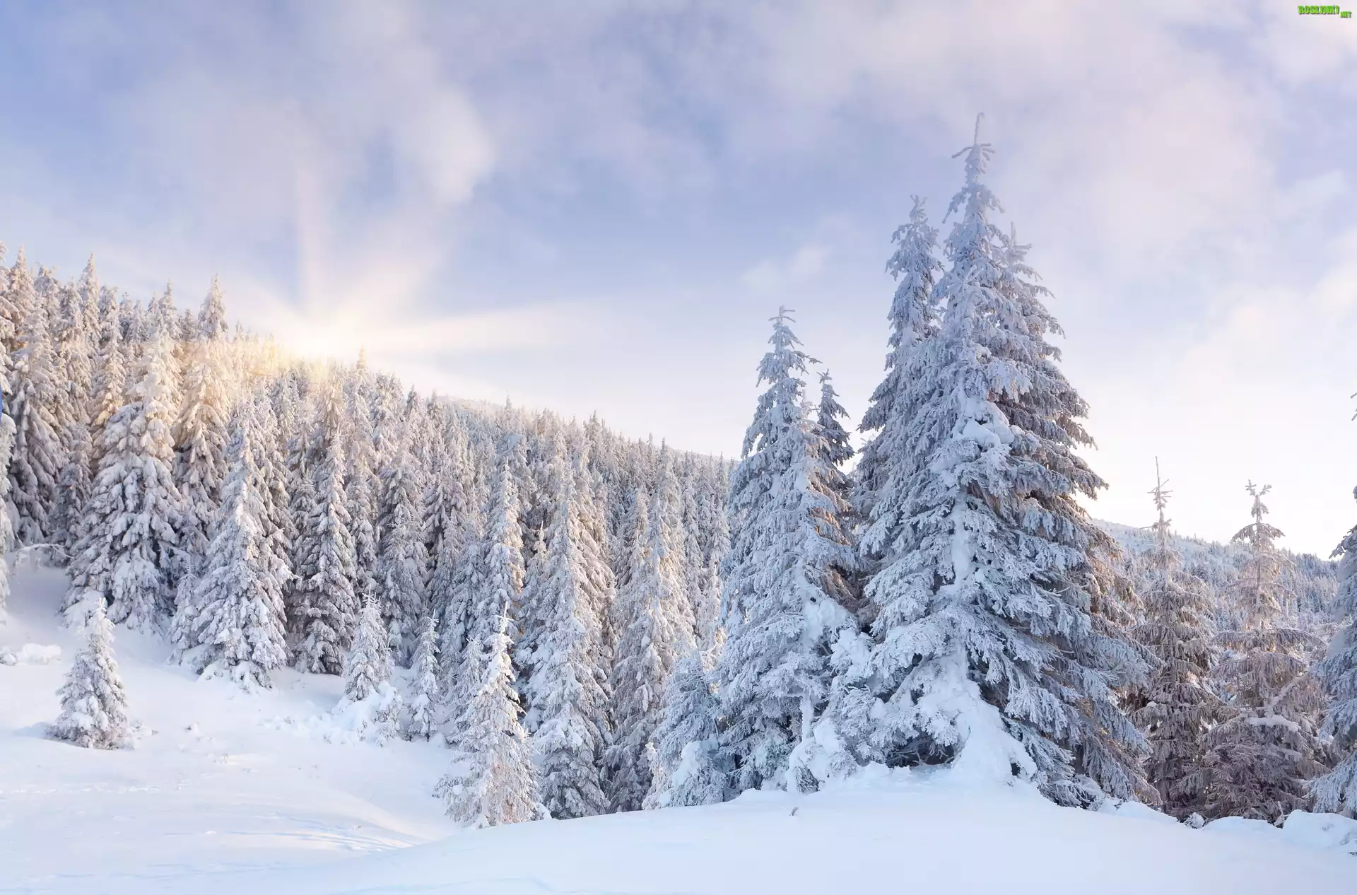 Rośliny: Promienie Słońca, Drzewa, Śnieg