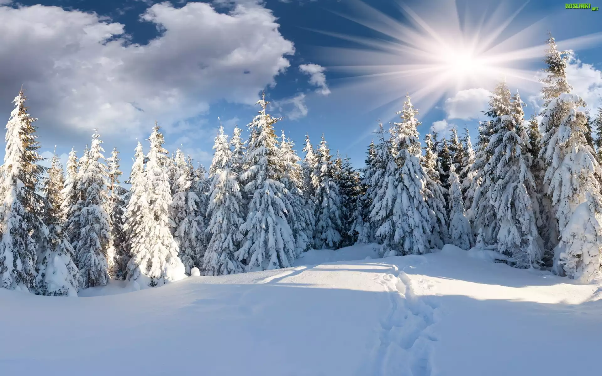 Rośliny: Promienie Słońca, Drzewa, Pokryte, Śniegiem
