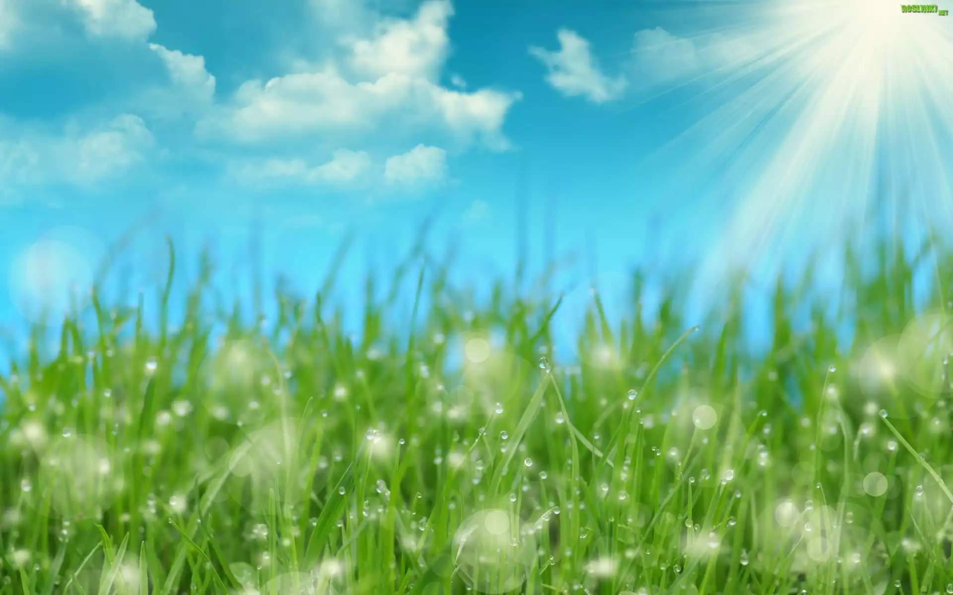 Rośliny: Promienie, Słońca, Trawa, Rosa