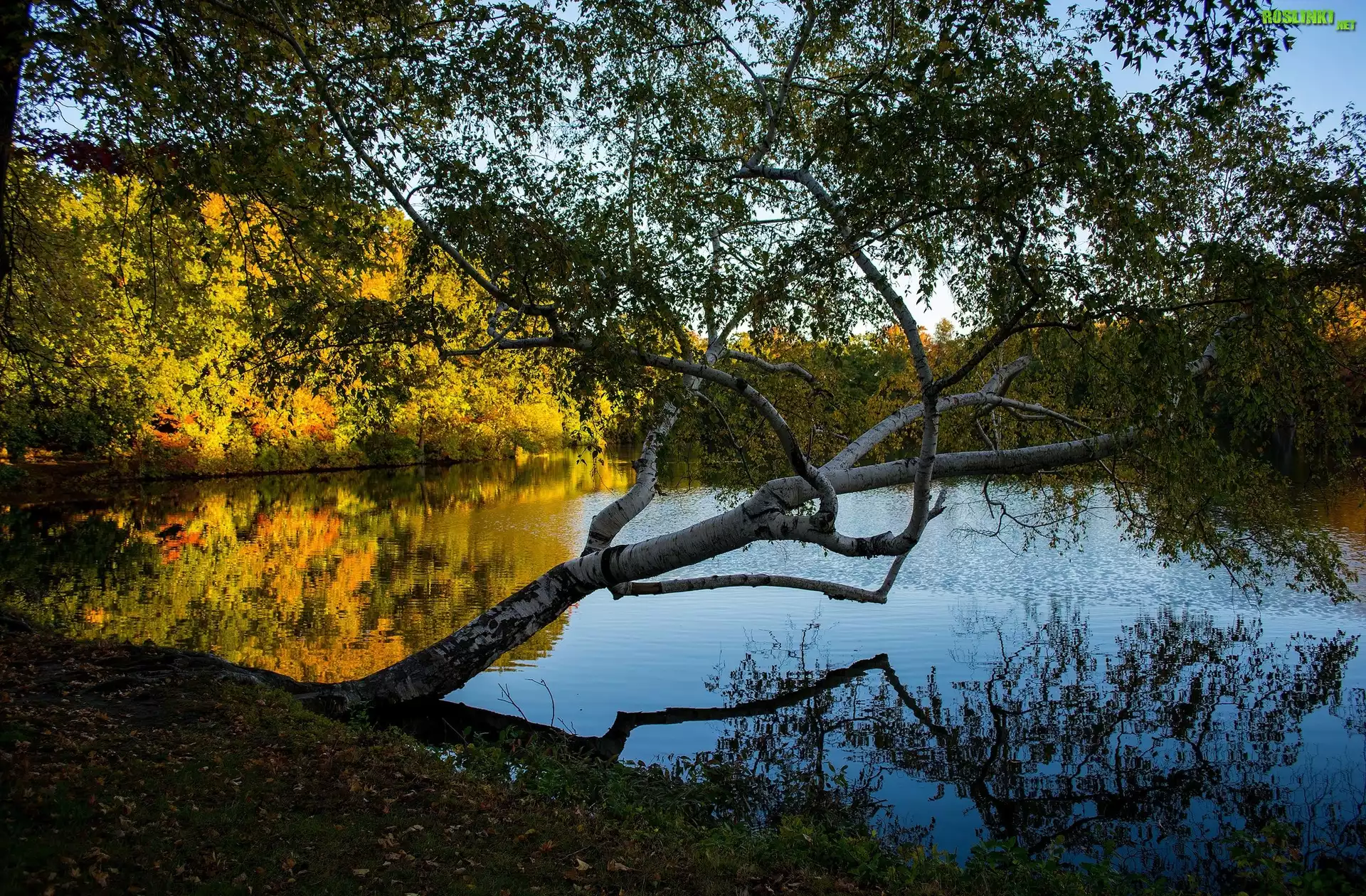 Stany Zjednoczone, Stan Rhode Island, Providence, Roger Williams Park, Jezioro, Drzewa, Brzoza